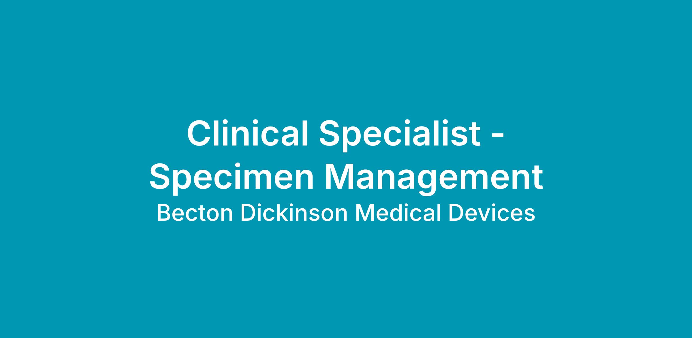 - Strong technical and nursing background, preferably with experience in BD Specimen Management products.
