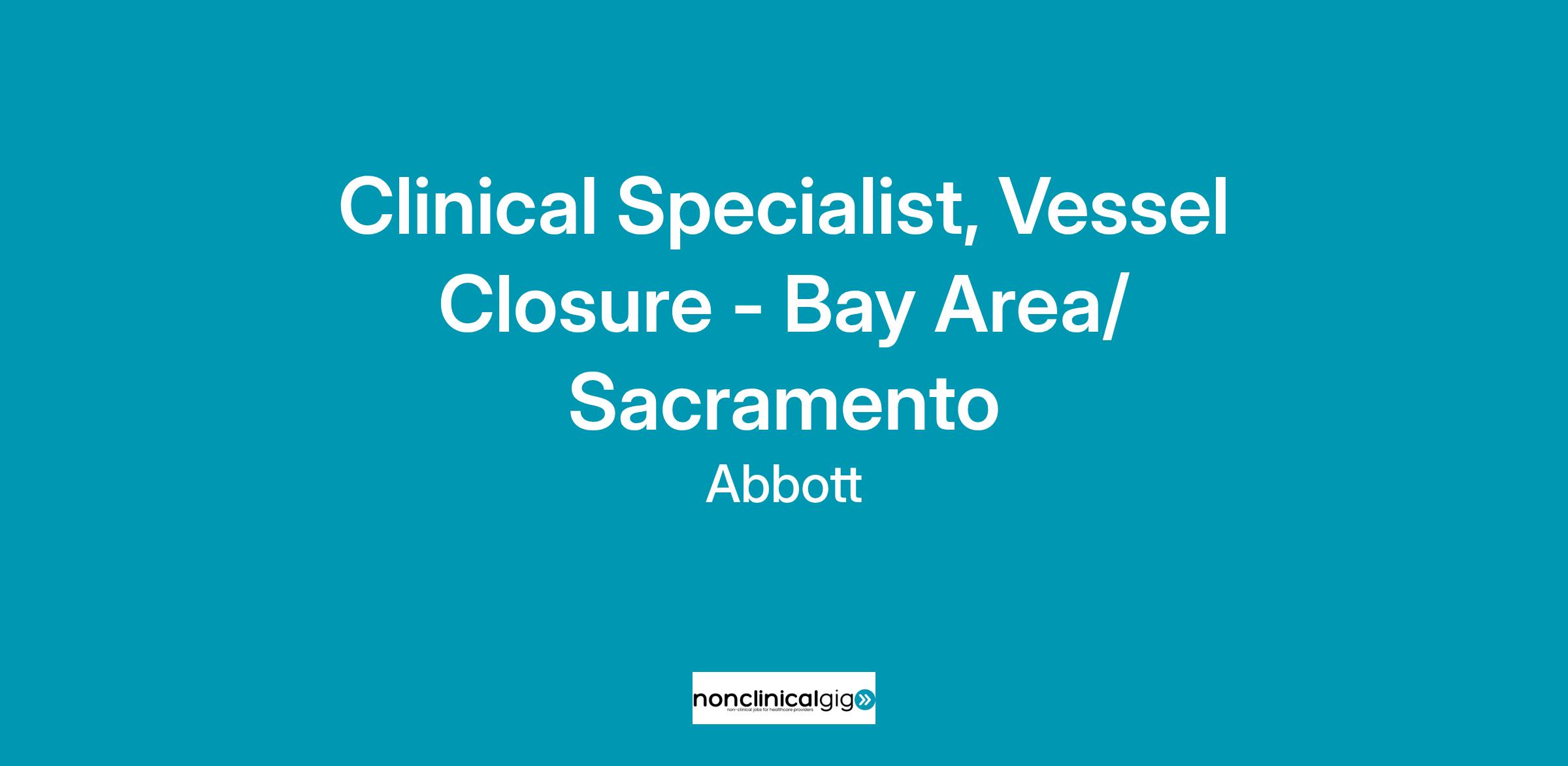 We currently have an opportunity for a Clinical Specialist, Vessel Closure, in Bay Area/Sacramento. The Clinical Specialist will primarily be responsible for case planning, case support coverage, and product pull- through throughout the designated territory, and throughout the Region as needed. The Clinical Specialist will promote Vascular products through education, service and training of customers in the hospital setting. The Clinical Specialist will provide clinical education and sales support in order to assist in achieving projected sales goals, increasing sales revenues within assigned product lines, and increasing market share. This position will have a heavy focus on Vessel Closure.