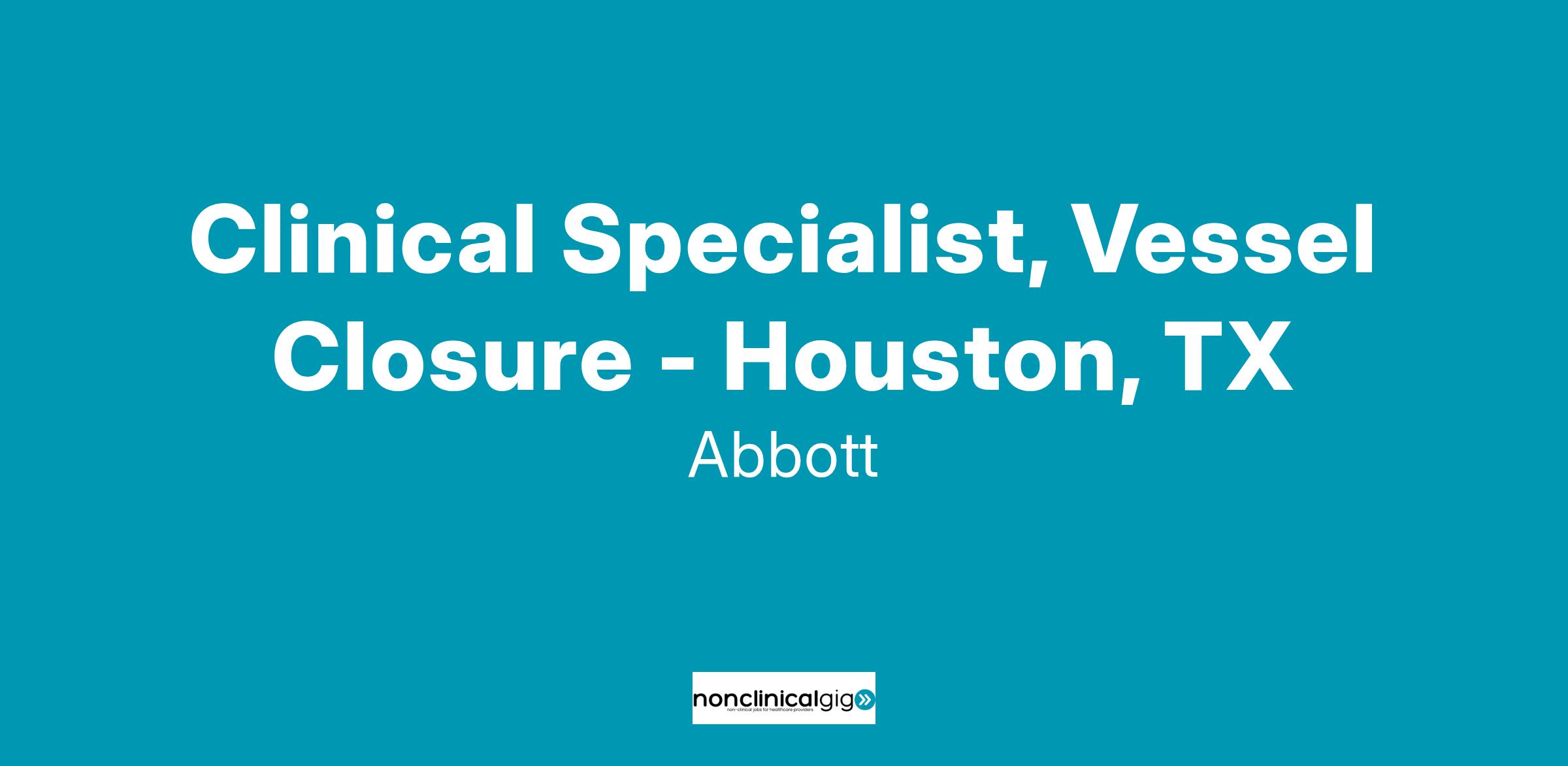 We currently have an opportunity for a Clinical Specialist, Vessel Closure, in Houston, TX. The Clinical Specialist will primarily be responsible for case planning, case support coverage, and product pull- through throughout the designated territory, and throughout the Region as needed. The Clinical Specialist will promote Vascular products through education, service and training of customers in the hospital setting. The Clinical Specialist will provide clinical education and sales support in order to assist in achieving projected sales goals, increasing sales revenues within assigned product lines, and increasing market share. This position will have a heavy focus on Vessel Closure.