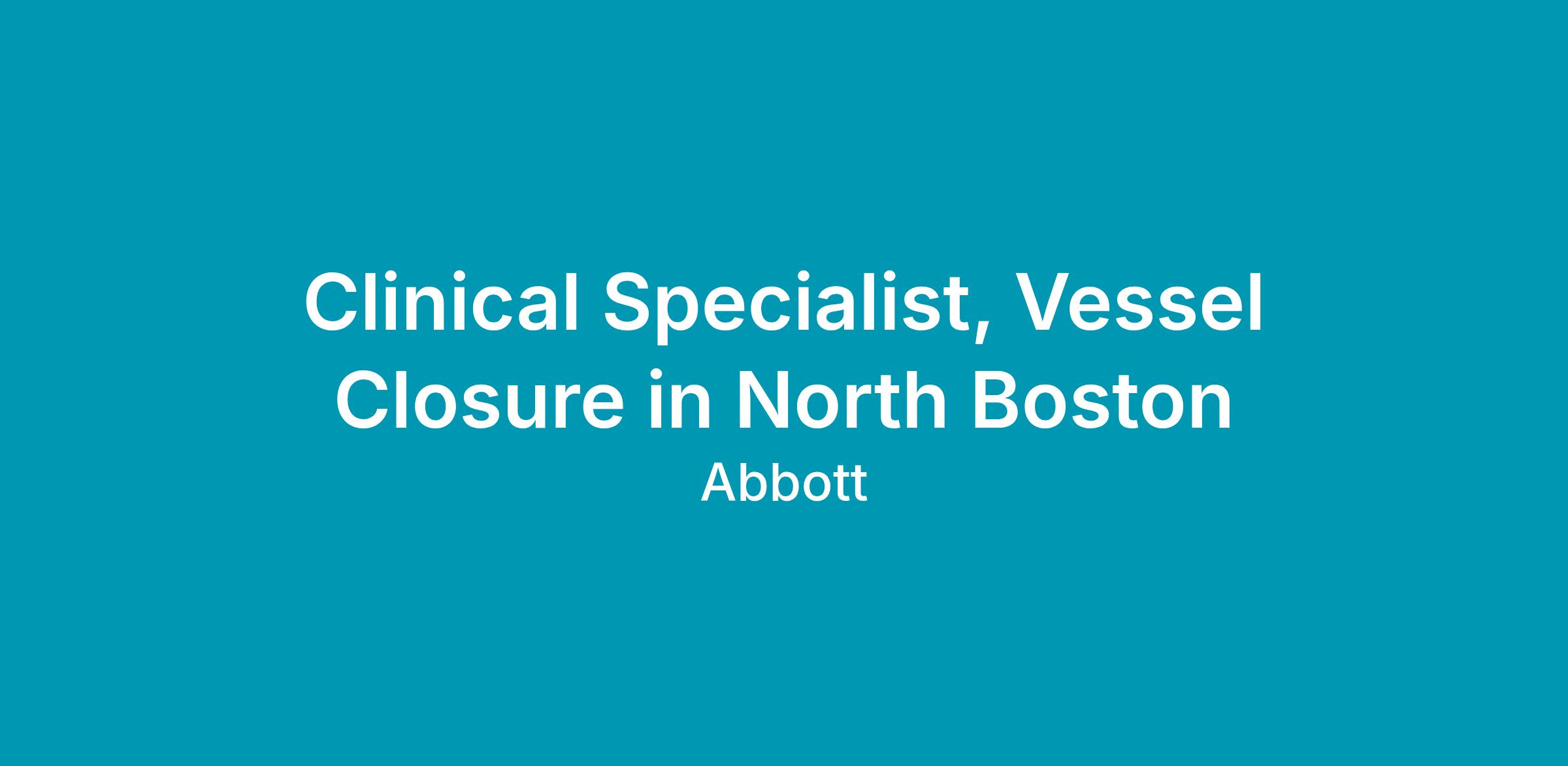 We currently have an opportunity for a Clinical Specialist, Vessel Closure, in North Boston. The Clinical Specialist will primarily be responsible for case planning, case support coverage, and product pull- through throughout the designated territory, and throughout the Region as needed. The Clinical Specialist will promote Vascular products through education, service and training of customers in the hospital setting. The Clinical Specialist will provide clinical education and sales support in order to assist in achieving projected sales goals, increasing sales revenues within assigned product lines, and increasing market share. This position will have a heavy focus on Vessel Closure.