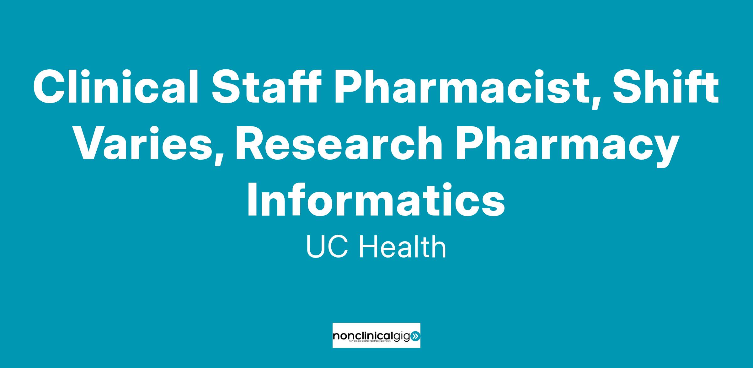 Required Skills and Knowledge: Ability to work independently with minimal direct supervision; work cooperatively with health-system and pharmacy staff; handle frequent interruptions and adapt to changes in workload and work schedule; set priorities, make critical decisions, and respond quickly to emergent requests; exercise sound professional judgment; communicate effectively (orally and in writing); and meet the pharmaceutical care needs of the patient populations served by UC Health.