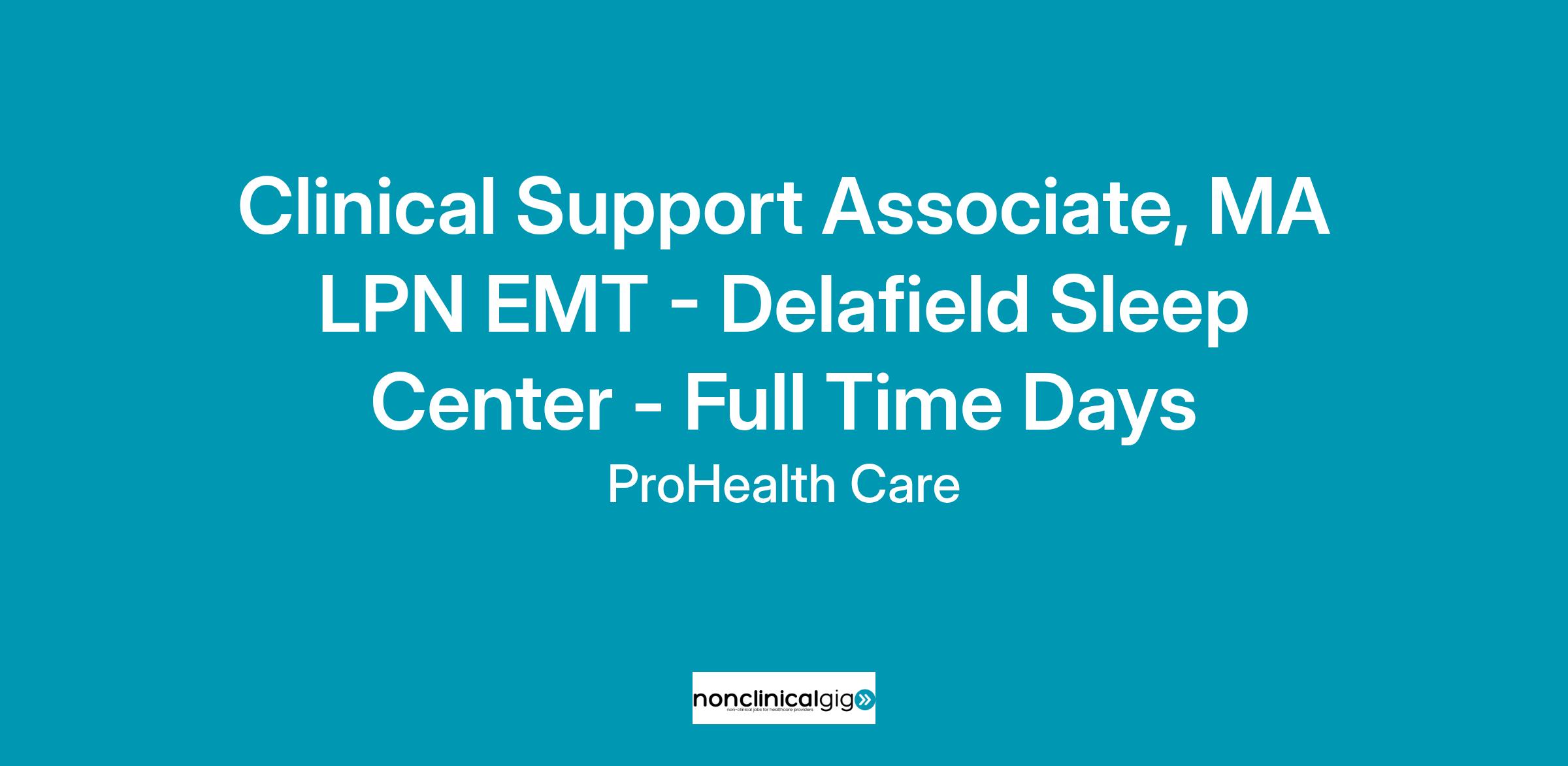 We Are Hiring: Clinical Support Associate, MA LPN EMT - Delafield Sleep Center - Full Time Days