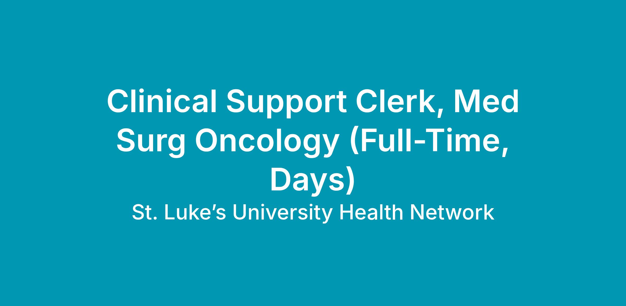 The Clinical Support Clerk is responsible for the daily clerical support for multiple clinical units/departments.