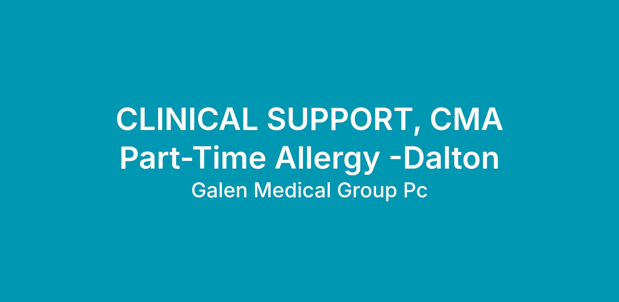 DescriptionCertified Medical Assistant- Part- Time- Allergy Dalton