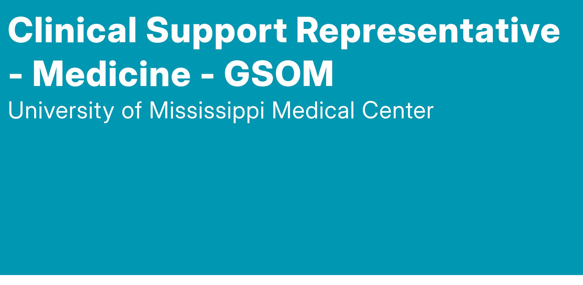 Clinical Support Representative - Medicine - GSOM