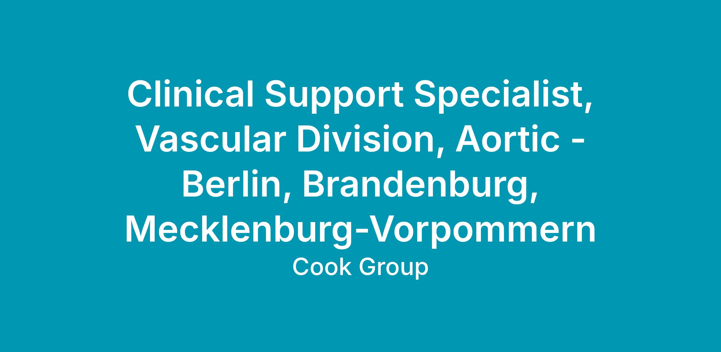 Clinical Support Specialist, Vascular Division, Aortic - Berlin, Brandenburg, Mecklenburg-Vorpommern