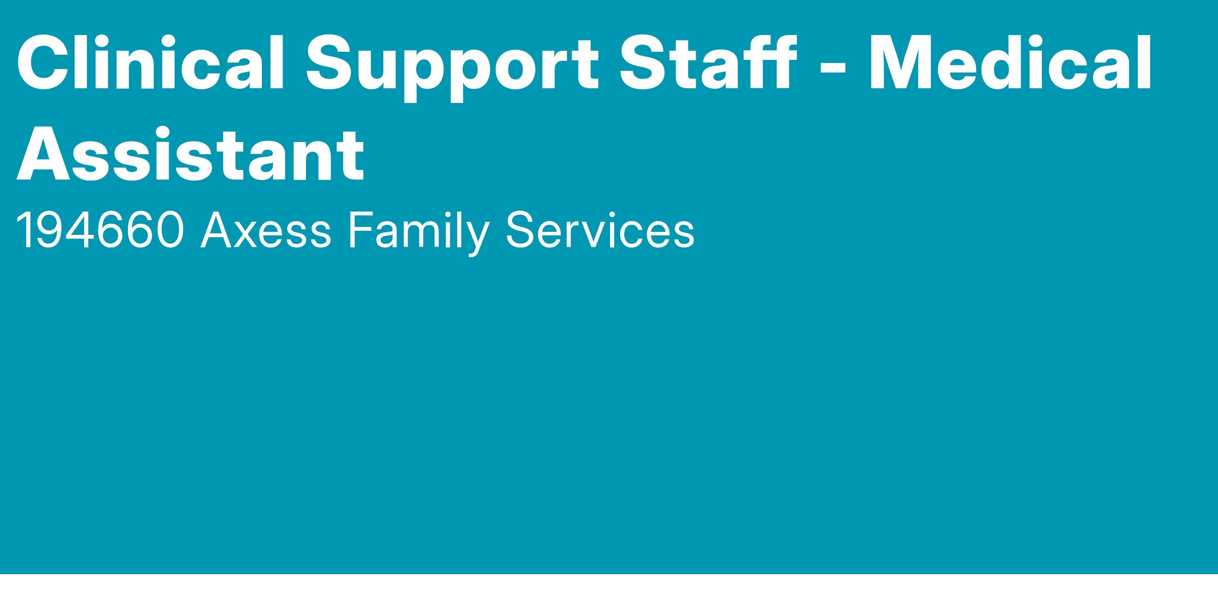 SUMMARY: Clinical Support Staff play a critical role in the delivery of quality medical care within the context of a federally qualified community health center. The Clinical Support Staff functions under the supervision and guidance of the Health Center Administrator. Participates in the multi-disciplinary process of providing care and treatment to patients and provides clinical support and technical assistance to the professional medical and other staff. Clinical Support Staff is responsible for functioning within the scope of practice for their licensure or certification. Clinical Support Staff must be able to manage a demanding workload with accuracy. Position requires excellent customer service skills with patients and their families, other staff, providers, vendors, and the public.