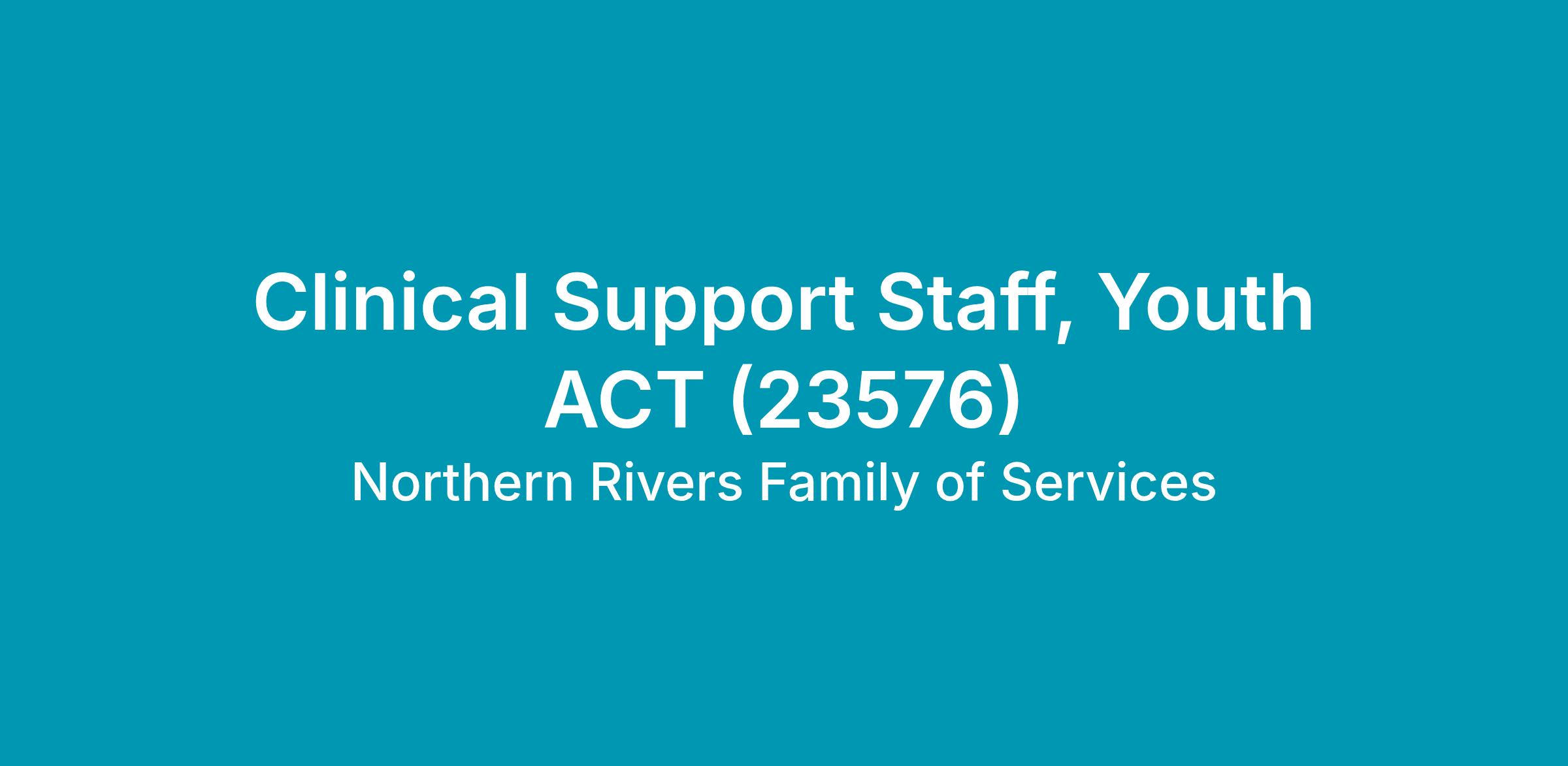 As a Clinical Support Staff in the Youth ACT program, you will help children and families acquire the necessary skills to manage their health, improve family relationships, and develop opportunities for social activities and interactions. You will report to the Youth ACT Program Director and you will work onsite and in the community.