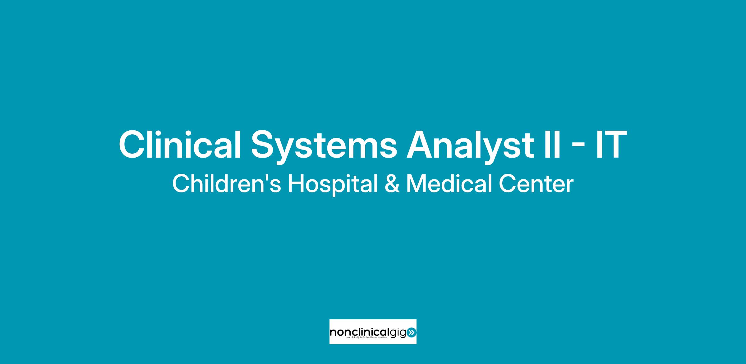 - Analyze, design, configure, test and maintain Children’s Hospital & Medical Center’s clinical applications through collaboration with members of care teams, operational leaders, technical team members and other relevant stakeholders.