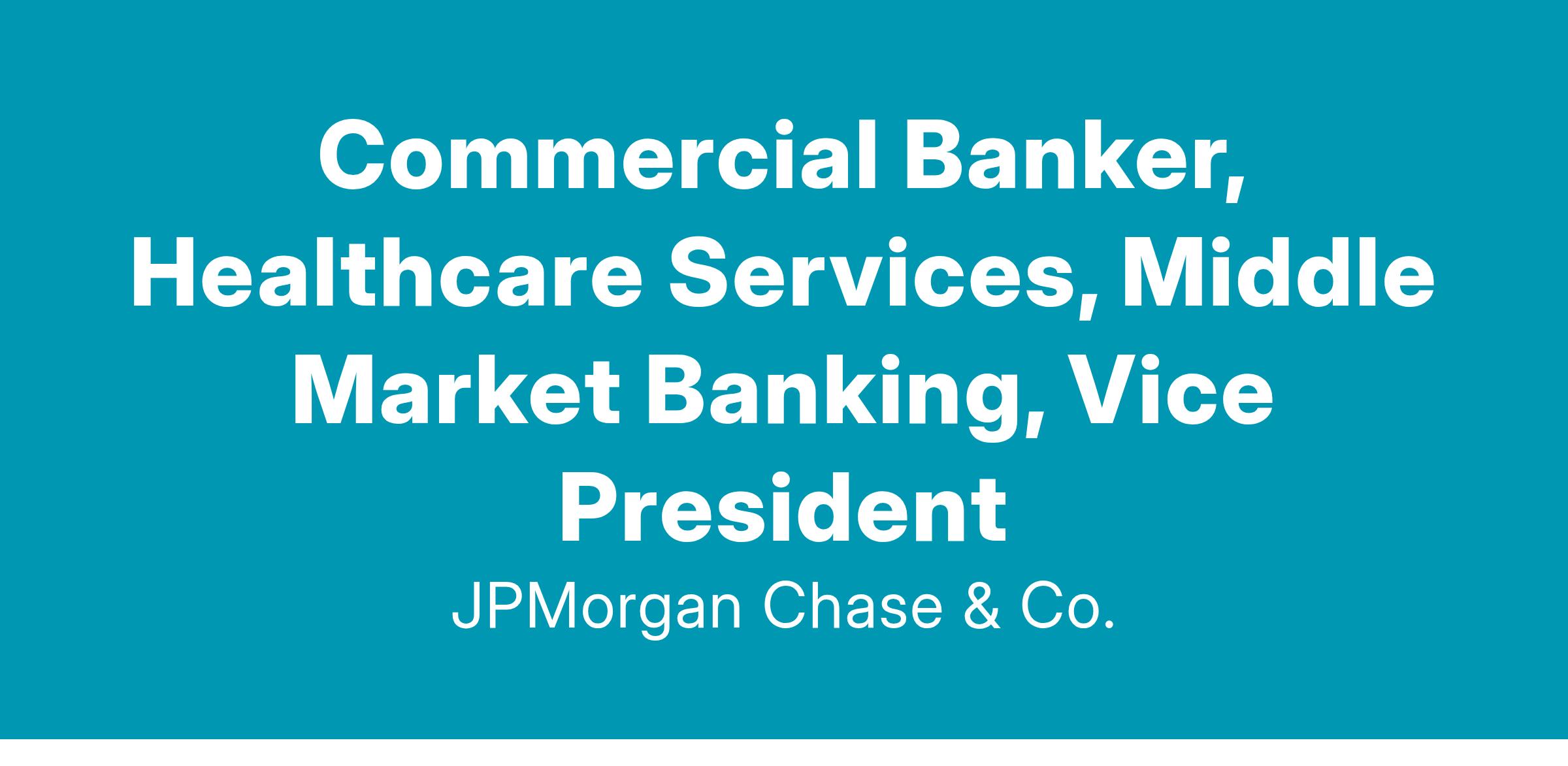 The Healthcare Services team is part of J.P. Morgan's Commercial Bank in its Middle Market Banking and Specialized Industries group. In this role you will be the focal point of client acquisition and ongoing relationships with the world’s most innovative companies. We work both independently and as part of a dynamic team to deliver the entire firm to our clients.