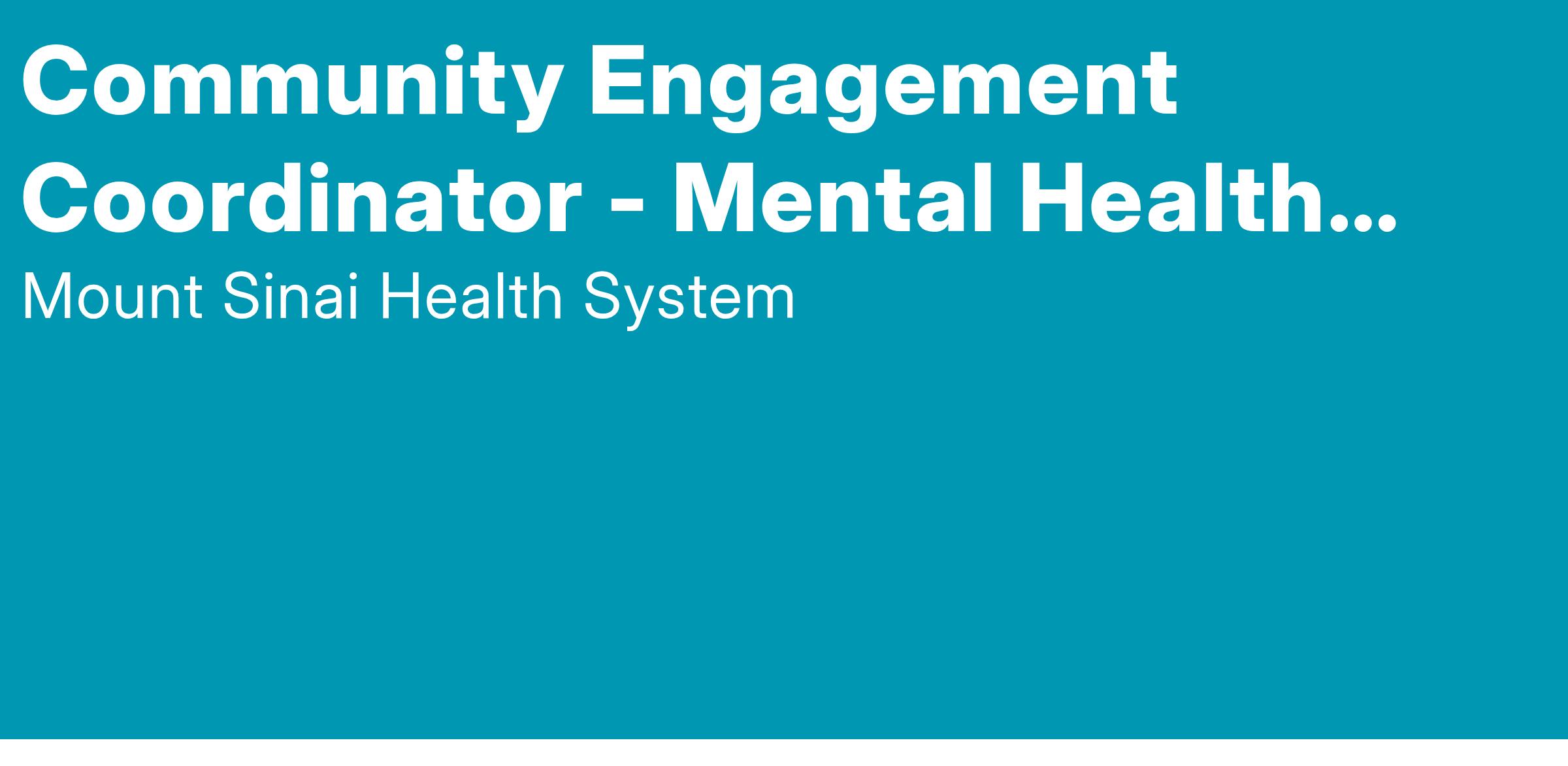 The Community Engagement Coordinator within the Icahn School of Medicine at Mount Sinai will conduct clerical, administrative and research activities mainly taking place in community-based settings. Working closely with the Program Manager, the Coordinator will support ongoing mental health initiatives and research programs, primarily the HOPE Center/ISSM Partnership and the Brothers=Connect and Haven=Connect initiatives.