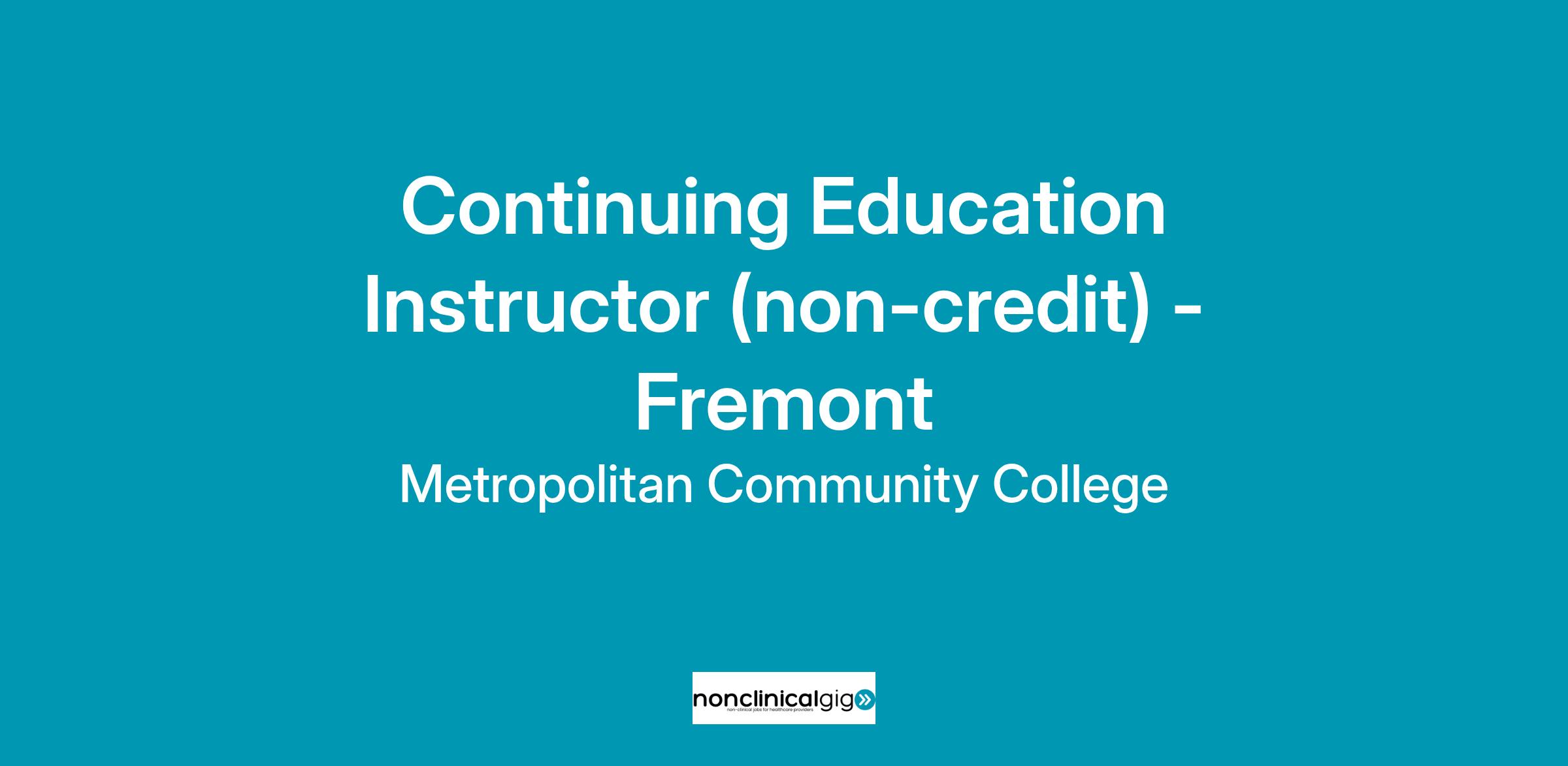 MCC’s Continuing Education Division is seeking enthusiastic and experienced non-credit instructors to provide personal enrichment opportunities to members of the Fremont community. This position will have various teaching opportunities throughout the year and will be responsible for developing and delivering engaging and practical course content that enhances students’ personal growth and enriches their lives. Most classes are held on weeknights or weekends, with limited opportunities to teach during the day.ESSENTIAL POSITION FUNCTIONS:
