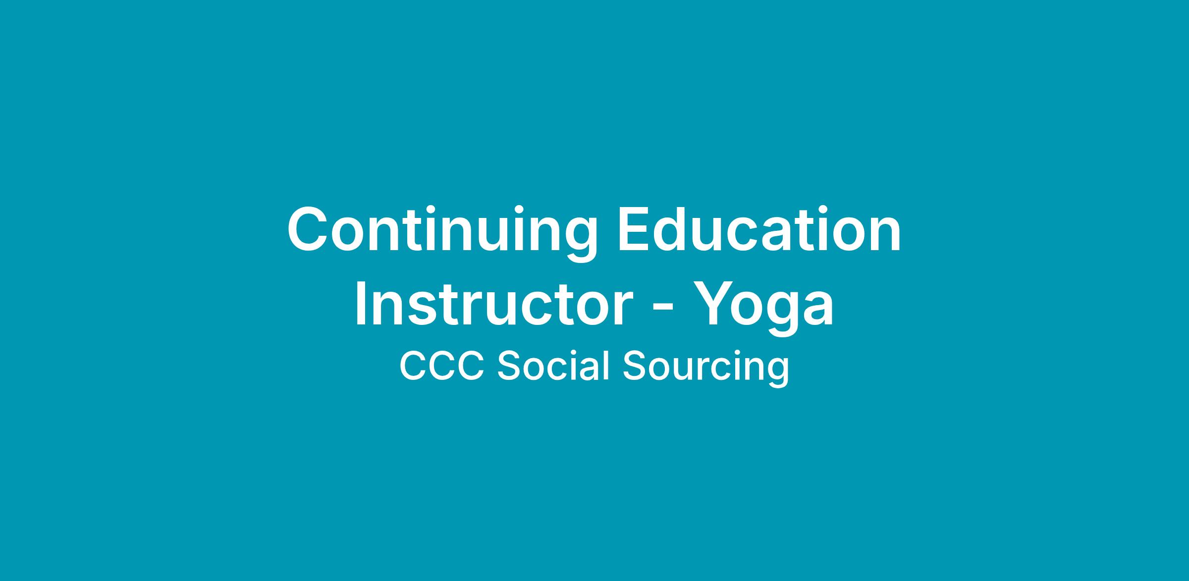 CONTINUING EDUCATION - YOGA INSTRUCTOR (PART-TIME)