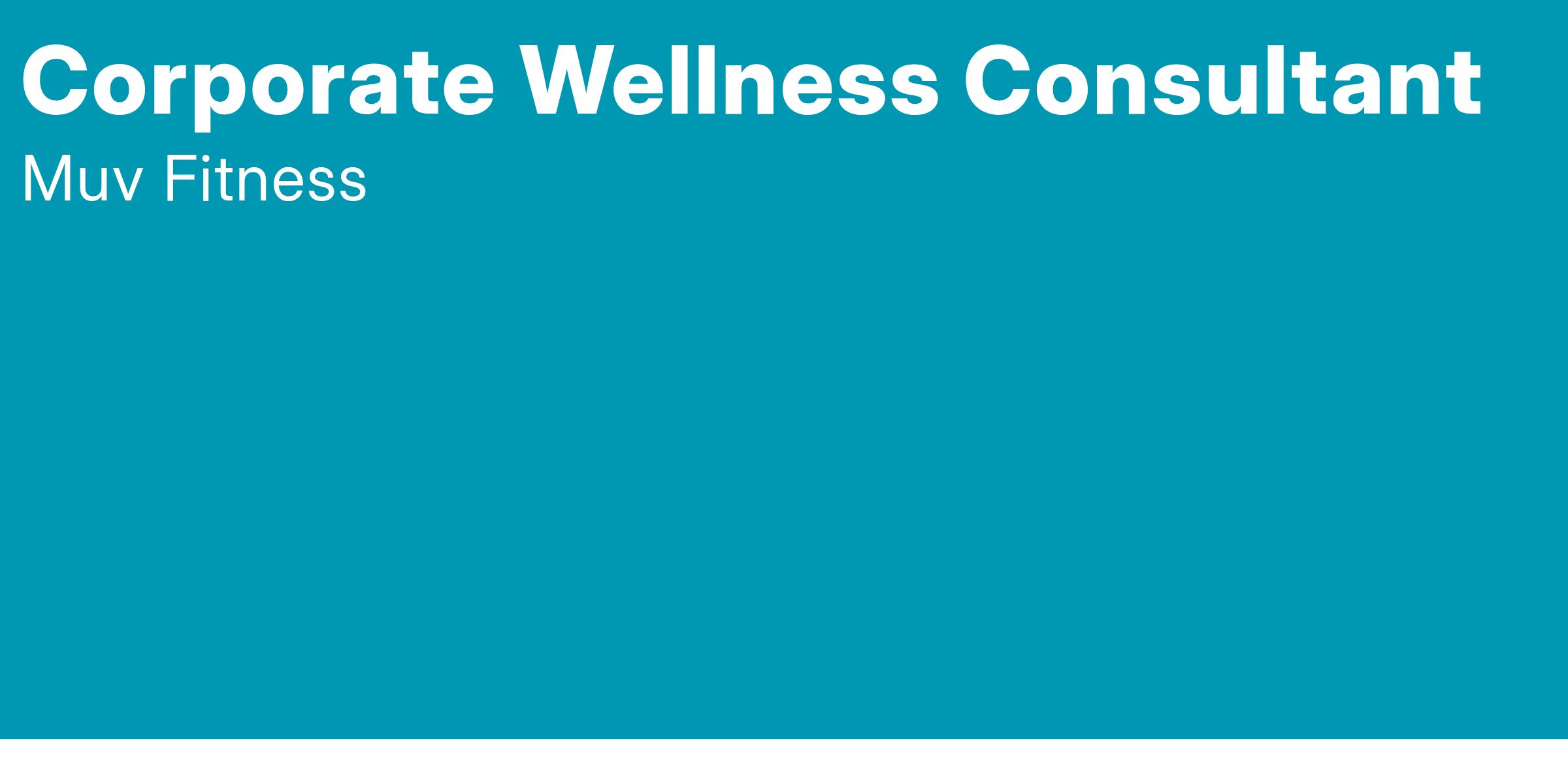 Job Description The Corporate Wellness Consultant has overall responsibility for effectively managing all facets of the MUV Fitness Corporate Wellness Program in the designated club/region to include establishing new corporate wellness program accounts, driving membership sales to your designated locations through the corporate wellness program, generating individual memberships through the corporate wellness program, and working closely with your district and club level managers to reach combined company set key performance indicators and established goals.