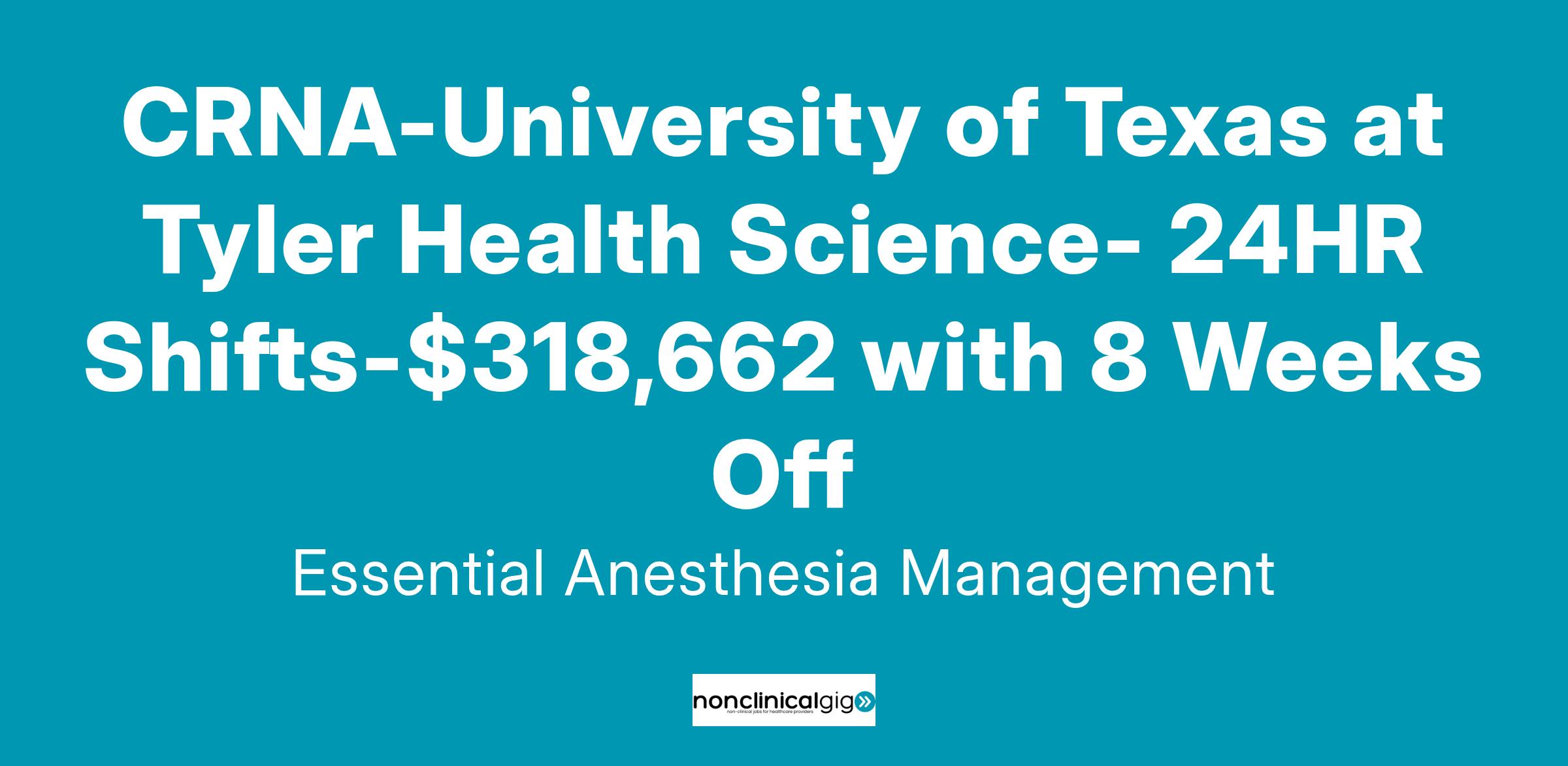 CRNA-University of Texas at Tyler Health Science- 24HR Shifts-$318,662 with 8 Weeks Off