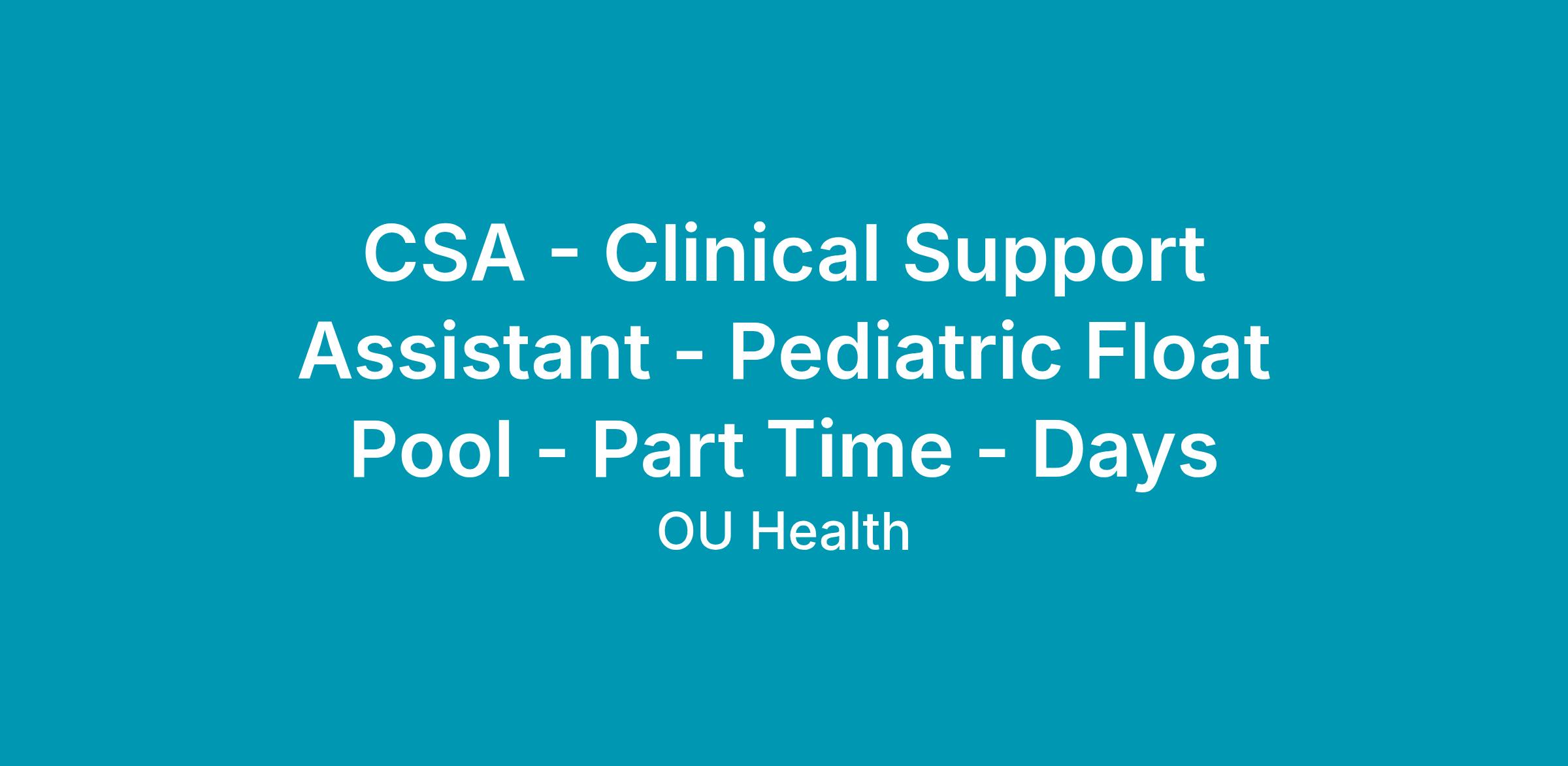 CSA - Clinical Support Assistant - Pediatric Float Pool - Part Time - Days