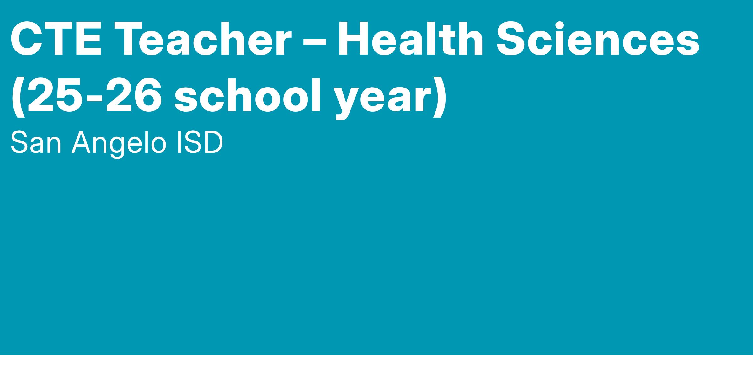 POSITION TITLE: CTE Teacher - Health Sciences