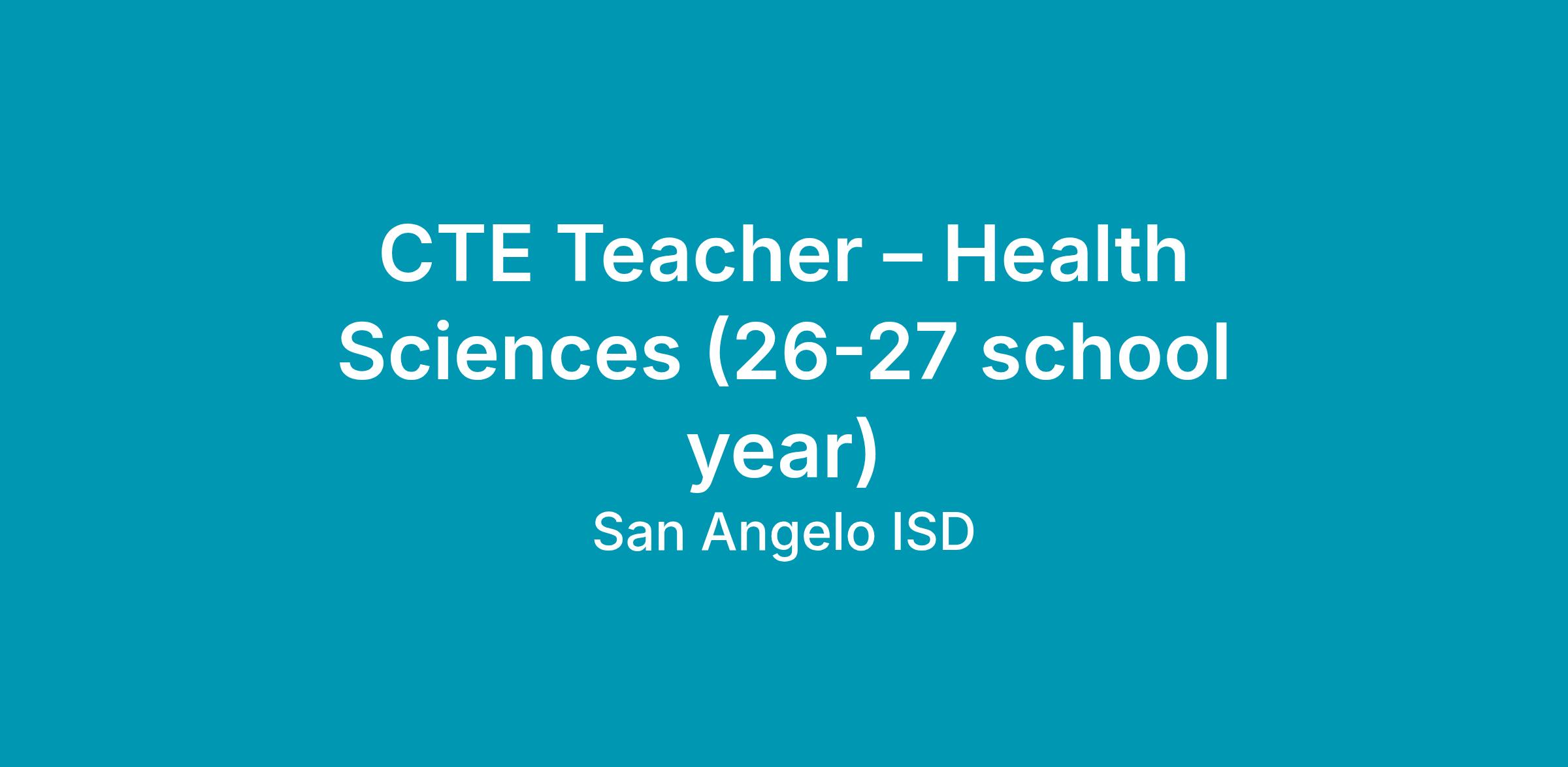 POSITION TITLE: CTE Teacher - Health Sciences