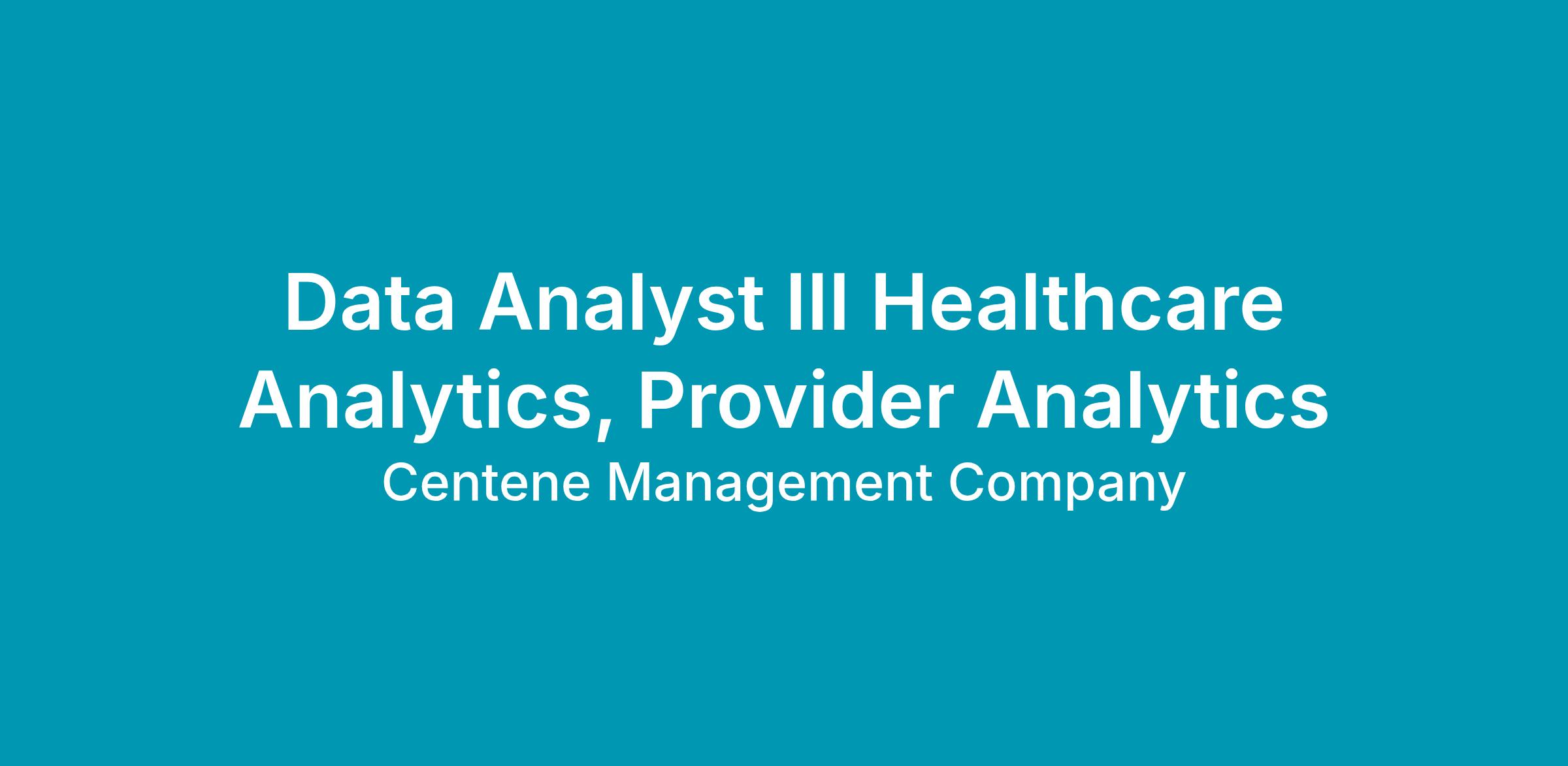Position Purpose: Analyze integrated and extensive datasets to extract value, which directly impacts and influences business decisions. Work collaboratively with key business stakeholders to identify areas of value, develop solutions, and deliver insights to reduce overall cost of care for members and improve their clinical outcomes. This Data Analyst III focuses on enterprise provider analytics to measure and report the actual impact of contract and network changes against projected outcomes. The team delivers standardized, structured reporting to track implementation accuracy and validate savings. With clearly defined initiatives and QAIs, the goal is consistent measurement to support network strategy and business decision-making.