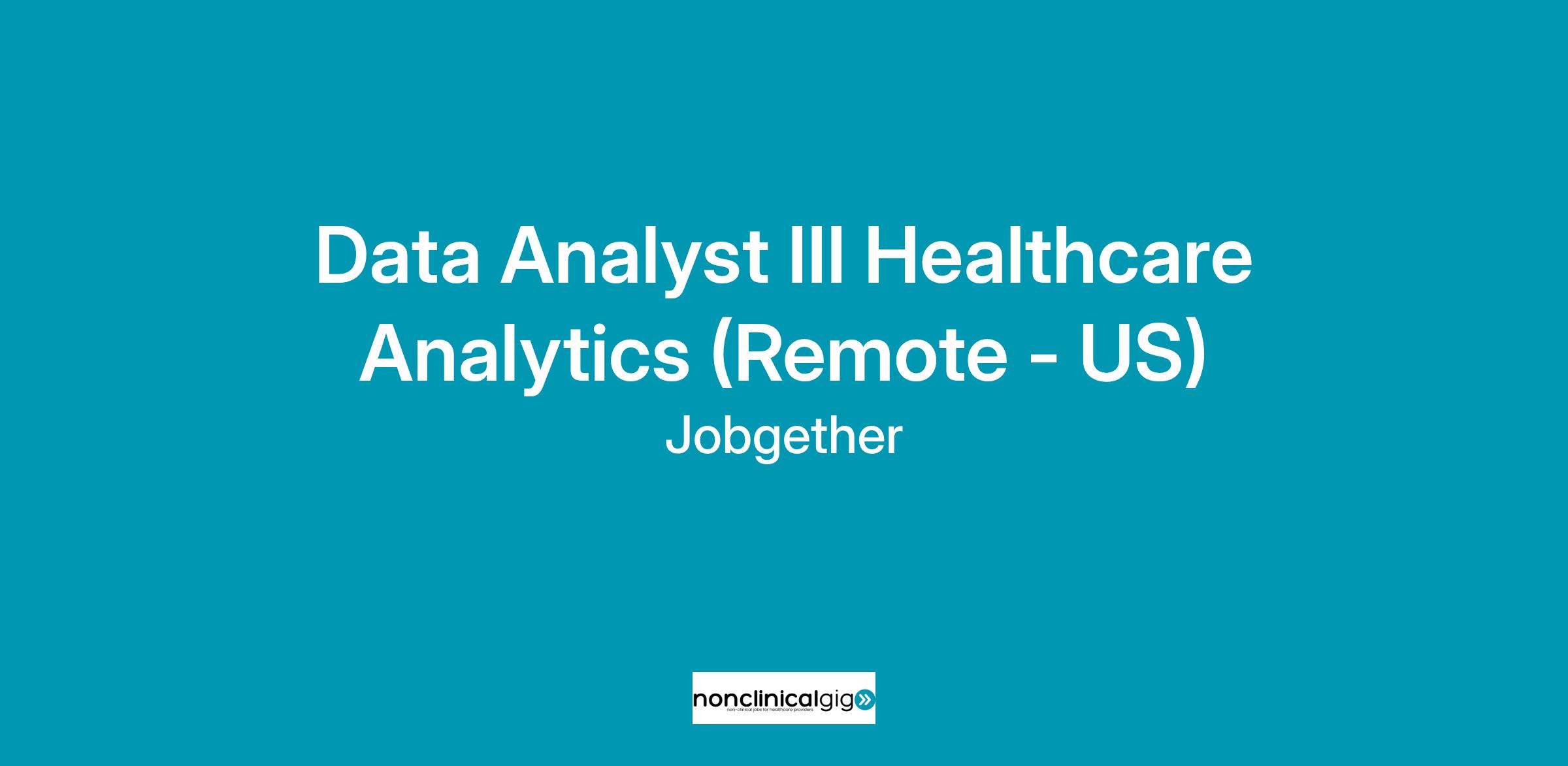 This position is posted by Jobgether on behalf of a partner company. We are currently looking for a Data Analyst III – Healthcare Analytics in the United States.