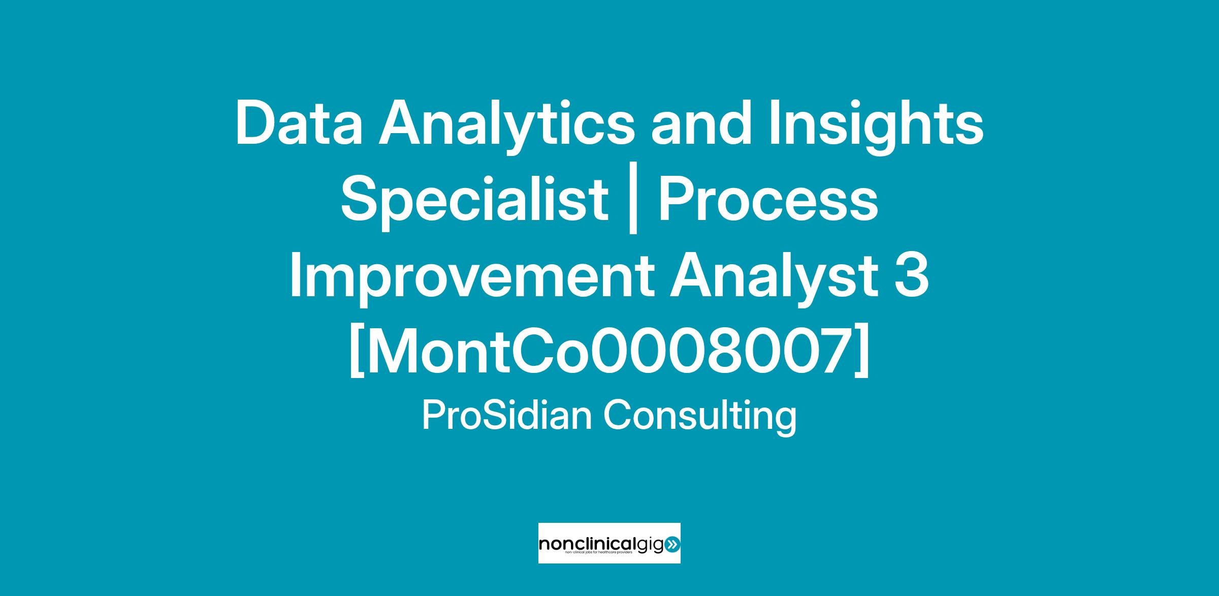 Seeking Data Analytics and Insights Specialist candidates with relevant Government and Public Services Sector Experience (functional and technical area expertise also ideal) to support professional services engagement for Government And Public Services Sector Clients such as MontCo. This as a Part-Time or Contract W-2 (IRS-1099) Process Improvement Analyst 3 Functional Area Professional - Operations Position; however, ProSidian reserves the right to convert to a Full-Time ProSidian employed W-2 Position.