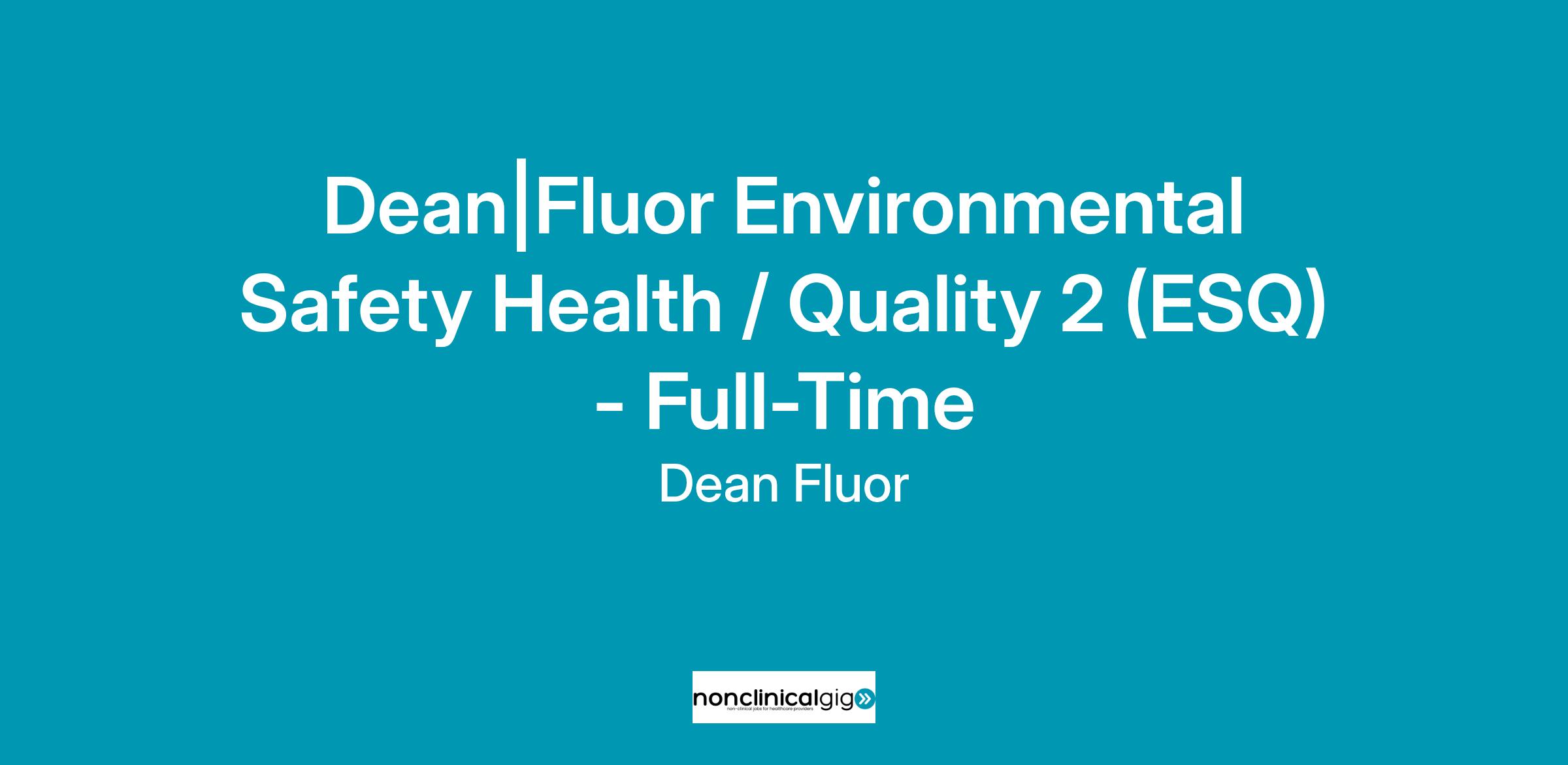 Dean|Fluor is looking for an Environmental Safety and Health Officer/Quality 2 - Full Time
