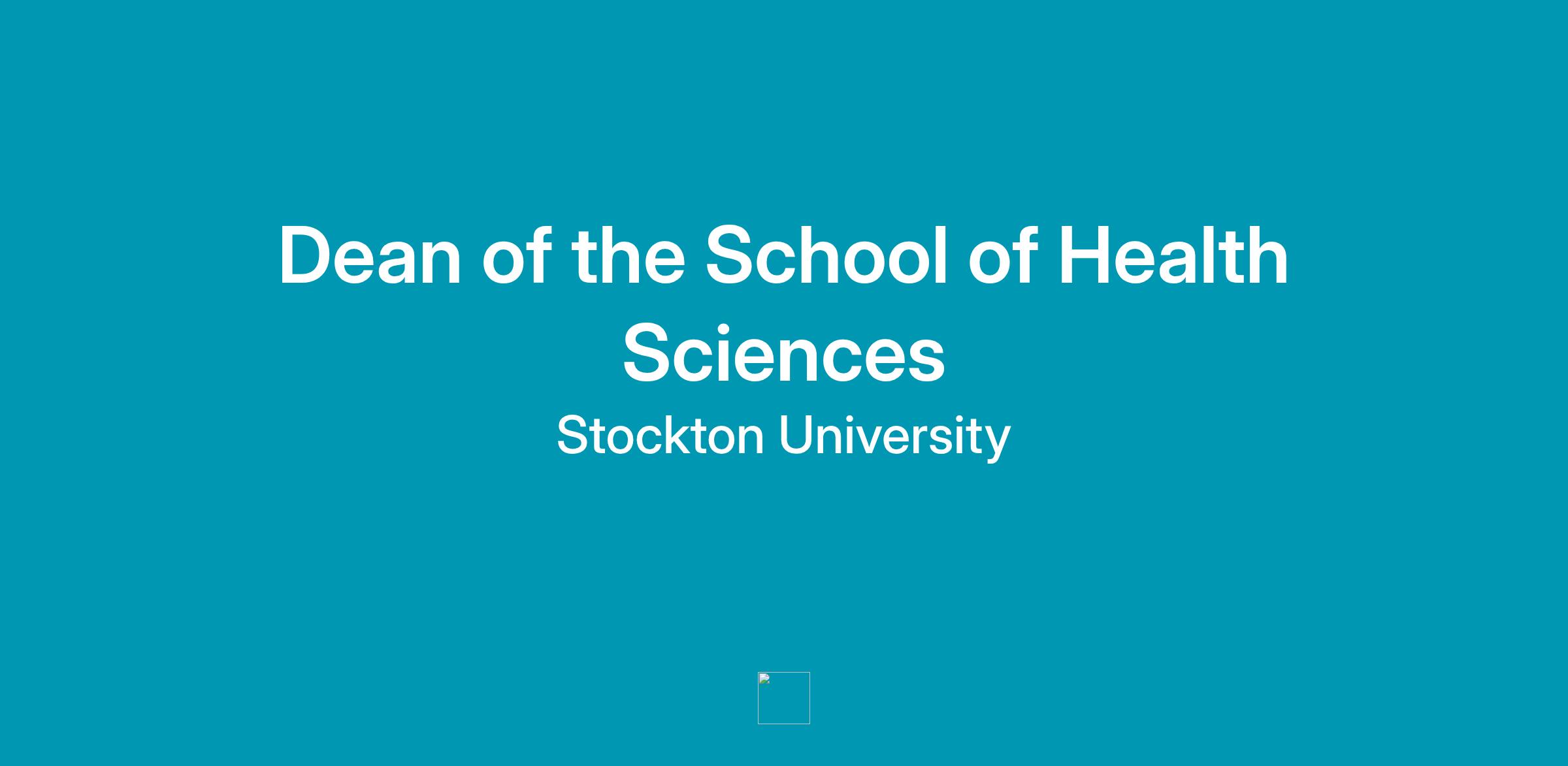 Descriptions of Essential Duties/Responsibilities: The Stockton University School of Health Sciences enrolls ~1700 students across programs that include undergraduate level Exercise Science, Health Science, Nursing, Public Health and graduate level Communication Sciences and Disorders, Nursing, Occupational Therapy, Physical Therapy and Public Health. The school benefits from strong clinical partnerships with local healthcare providers including AtlantiCare, a health system with a main campus hospital located on University property, two federally qualified healthcare centers, and an Atlantic City campus adjacent to the University campus in Atlantic City. The Dean of the School of Health Sciences will have a general charge to support and advance the continued excellence of the School. Reporting directly to the Provost and Vice President for Academic Affairs, the Dean is expected to provide dynamic vision, develop strategic initiatives, and lead long-term planning and policy development for the School in support of both the School and University's missions, congruent with the University’s new Strategic Plan. The Dean will provide transparent and authentic leadership, rooted in a deep and abiding appreciation for lifelong learning and a desire to serve students. The Dean will provide direction and guidance for academic curricula that support high-quality academic programs and prioritize student academic success. The Dean is responsible for the recruitment, development, support, and evaluation of faculty and staff, and they will also work to increase enrollment in undergraduate and graduate programs. The Dean is the School’s primary representative and engages with external stakeholders to build new relationships and enhance existing partnerships while building visibility, reputation, and fundraising support. The Dean serves as a member of the Dean’s Council and the Provost’s Academic Affairs Council. The Dean’s office includes an Assistant Dean and administrative staff.