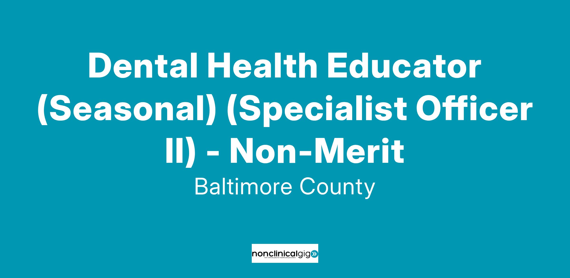 ATTN: Dental Health Educator (Seasonal) - Non-Merit