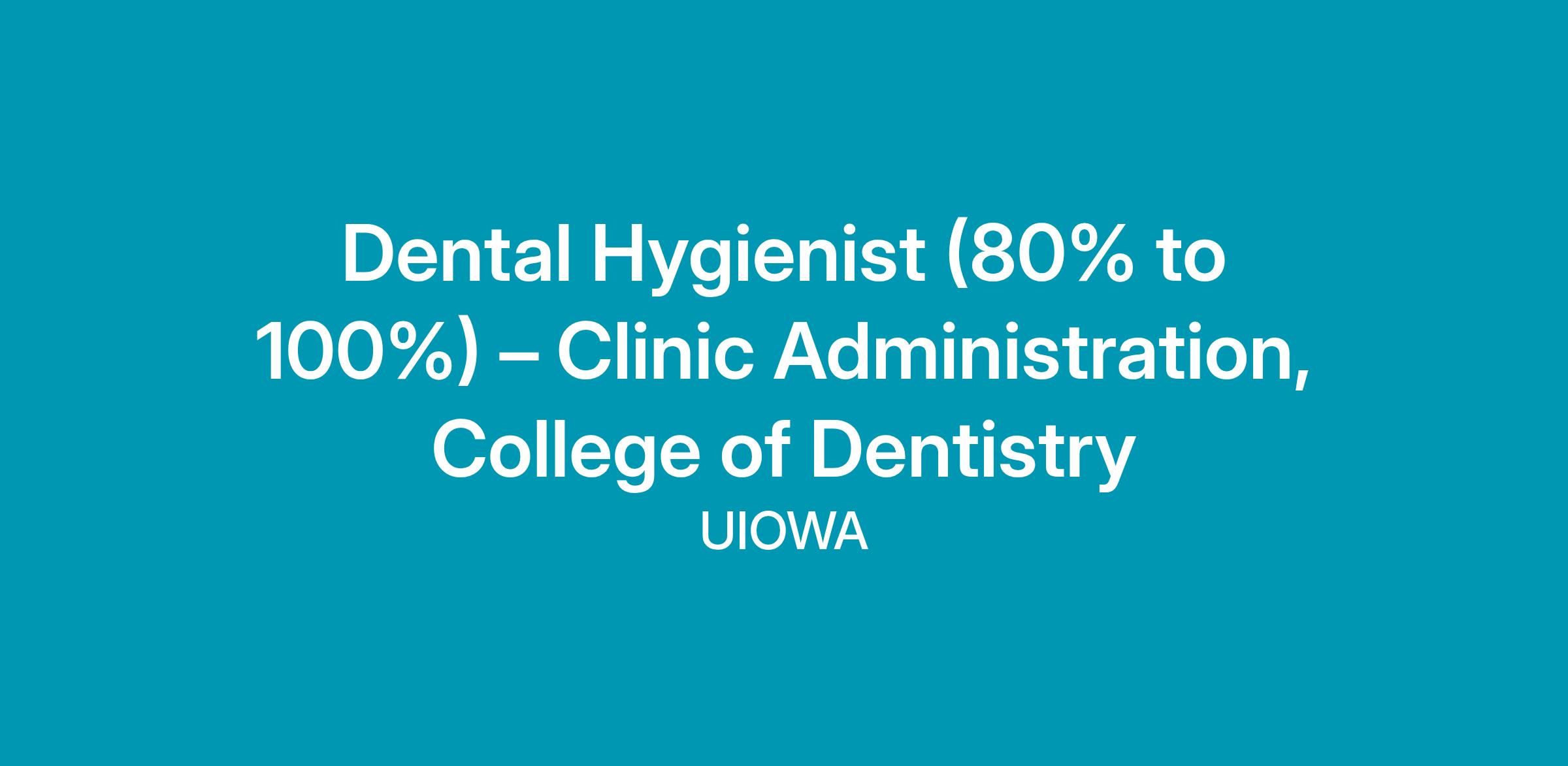 The University of Iowa College of Dentistry is seaeking an enthusiastic Dental Hygienist who is passionate about patient care to join us in our Clinic Administration department! You will be providing comprehesive hygiene care and education while working alongside multiple providers in a rewarding, fast paced setting!