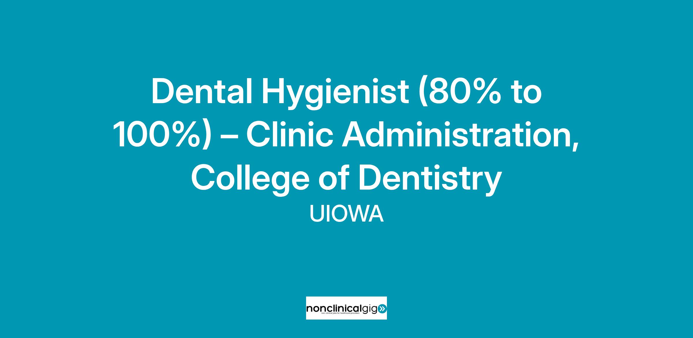 The University of Iowa College of Dentistry is seaeking an enthusiastic Dental Hygienist who is passionate about patient care to join us in our Clinic Administration department! You will be providing comprehesive hygiene care and education while working alongside multiple providers in a rewarding, fast paced setting!