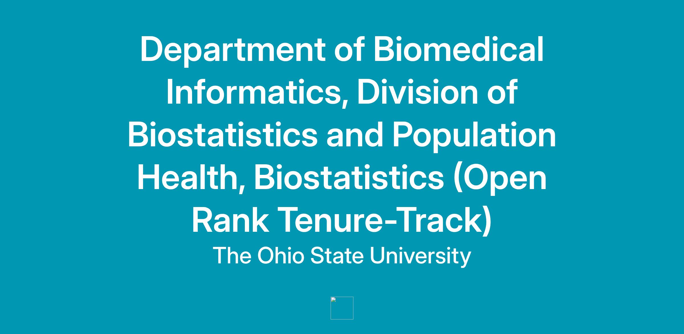 Division of Biostatistics and Population Health (BPH, https://medicine.osu.edu/departments/biomedical-informatics/divisions/division-of-biostatistics-and-population-health) in the Department of Biomedical Informatics (BMI, http://bmi.osu.edu) and Center for Biostatistics (CFB, https://medicine.osu.edu/departments/biostatistics) at The Ohio State University (OSU) is currently seeking applicants for open rank tenure-track faculty in biostatistics. Academic rank and track commensurate with academic record and experience.