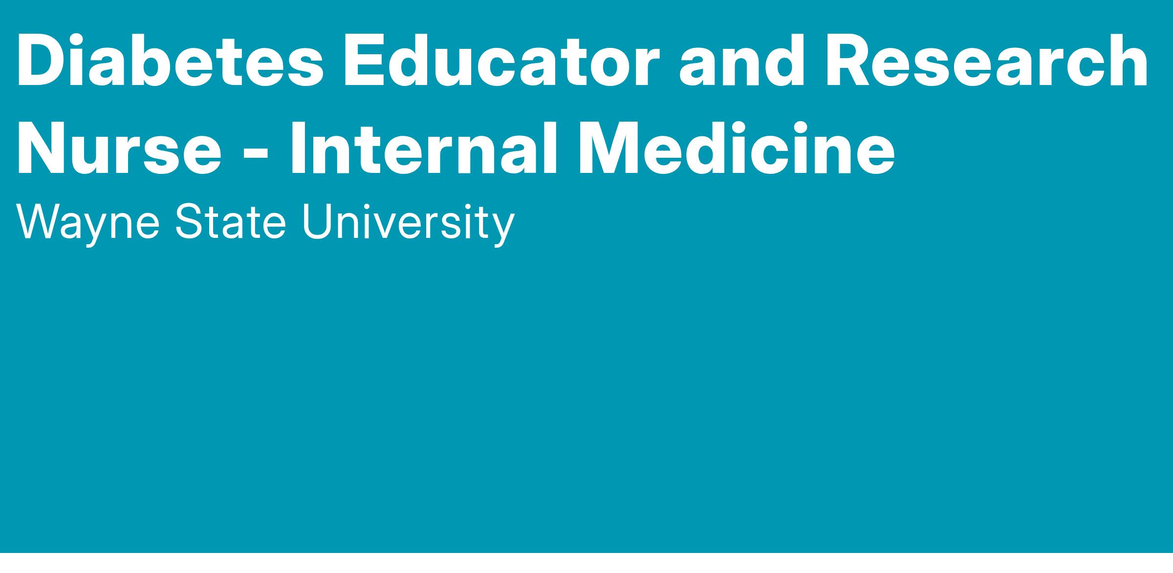 Wayne State University is searching for an experienced Diabetes Educator and Research Nurse - Internal Medicine at its Detroit campus location.