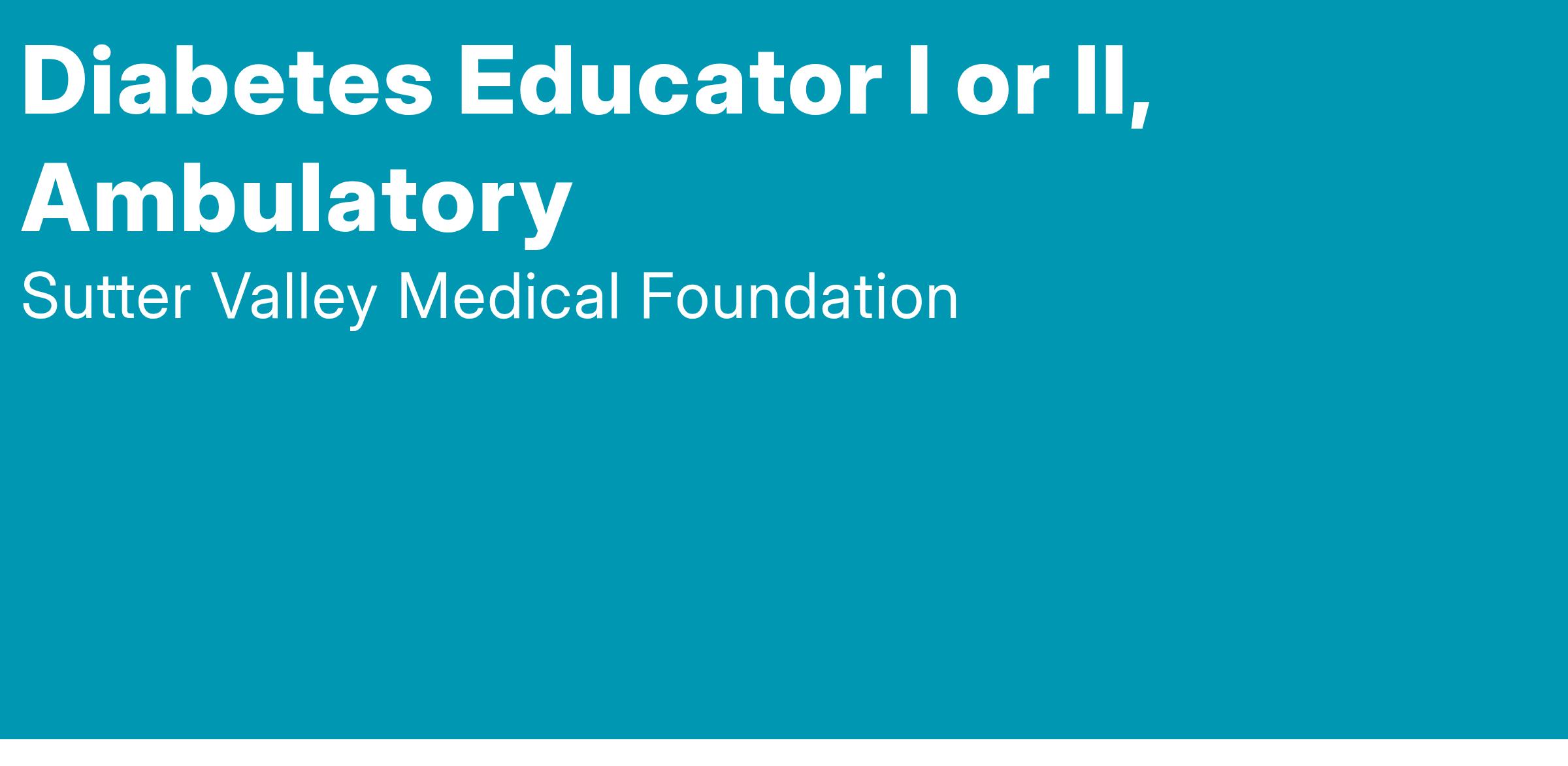 Sutter Health is an equal opportunity employer EOE/M/F/Disability/Veterans.