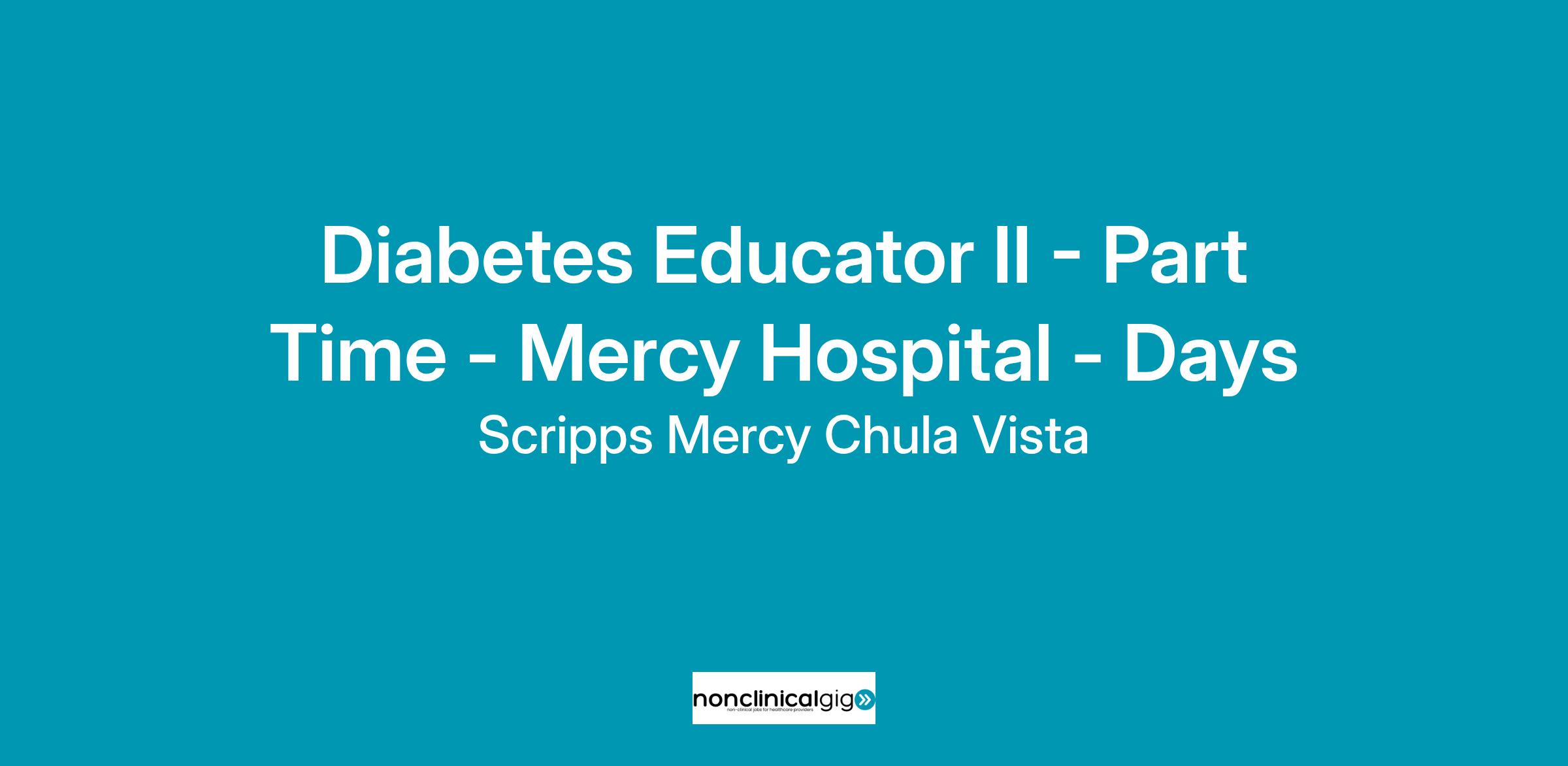 Join Scripps Health as a Diabetes Educator II, where you will play a vital, patient-facing role in empowering individuals and their families to manage diabetes effectively. In this position, you'll provide personalized education and support directly at the bedside, helping patients understand their diagnosis, treatment options, blood glucose monitoring, medication management, nutrition, and lifestyle modifications. Working collaboratively with a multidisciplinary care team, you'll be a key advocate for patient health, promoting self-management skills and long-term wellness in an inpatient setting.