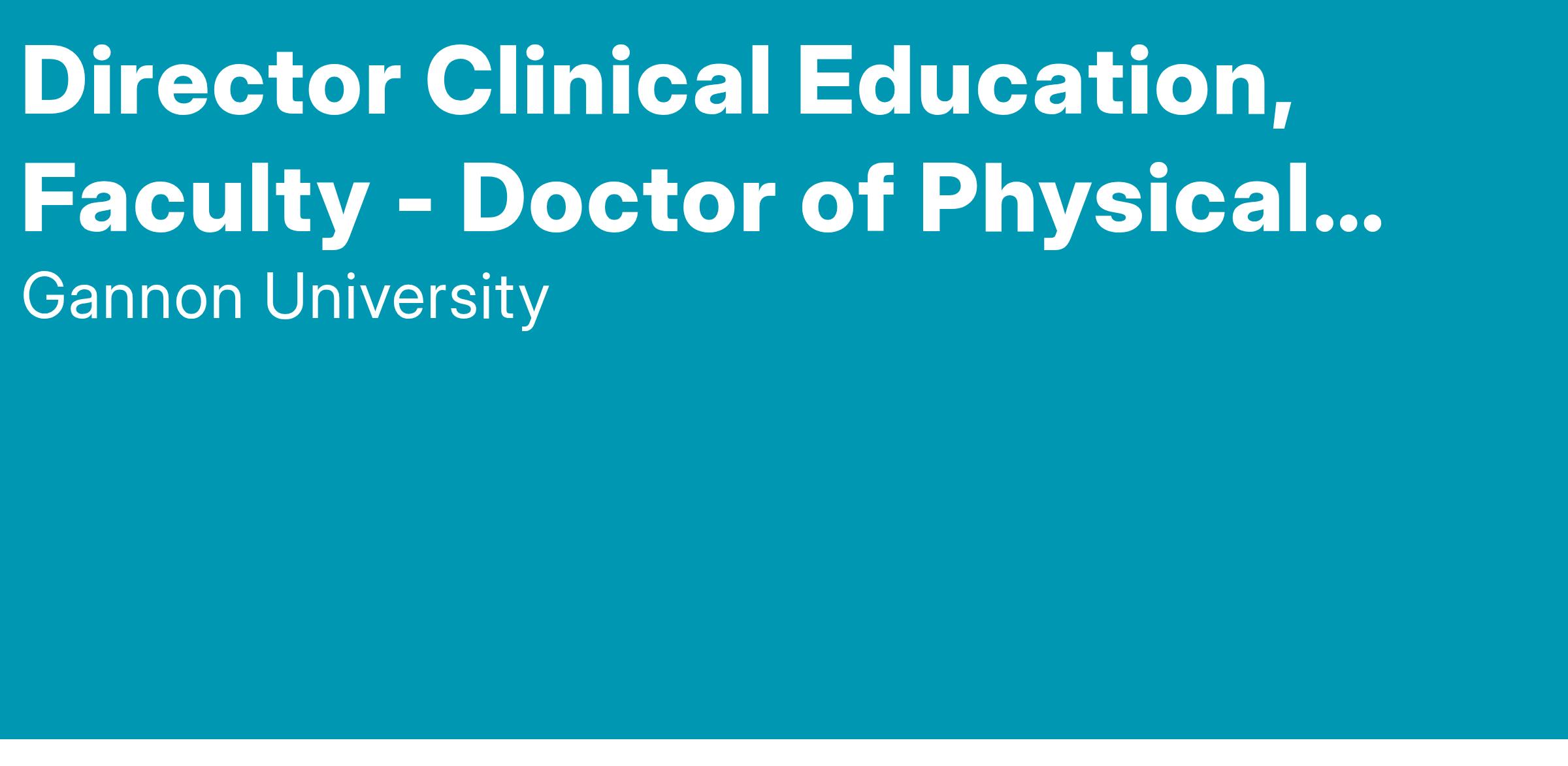 Gannon Universityβs Doctor of Physical Therapy Program, located at the Ruskin, Florida campus, seeks a core faculty member to serve as the Director of Clinical Education, with assigned rank and appointment based on experience and earned degree. This full-time, 12-month position will begin upon hire or as negotiated. Gannon seeks excellence through inclusiveness and invites members of underrepresented groups to apply. Gannon University faculty work collaboratively with colleagues to deliver instruction, advise students, engage in scholarship, and participate in service. The Director of Clinical Education will work closely with the Program Director to manage the Clinical Education program including placing students in appropriate clinical sites, monitoring student progression, addressing conflict, and providing support and training to clinical partners. The faculty team will work closely with the Director of Clinical Education to monitor and discuss student readiness for clinical experiences. The Director of Clinical Education also holds faculty responsibilities including teaching, scholarship, and service. Instructional content areas are to be determined by candidate expertise and program needs. A successful candidate is a self-starter who demonstrates flexibility, open communication, and good organizational skills. Gannon University is located in Ruskin, Florida along the Gulf Coast of Florida in the Tampa Bay/St. Petersburg/Bradenton region. The DPT program is housed within the School of Rehabilitative Sciences in the Morosky College of Health Professions and Sciences.