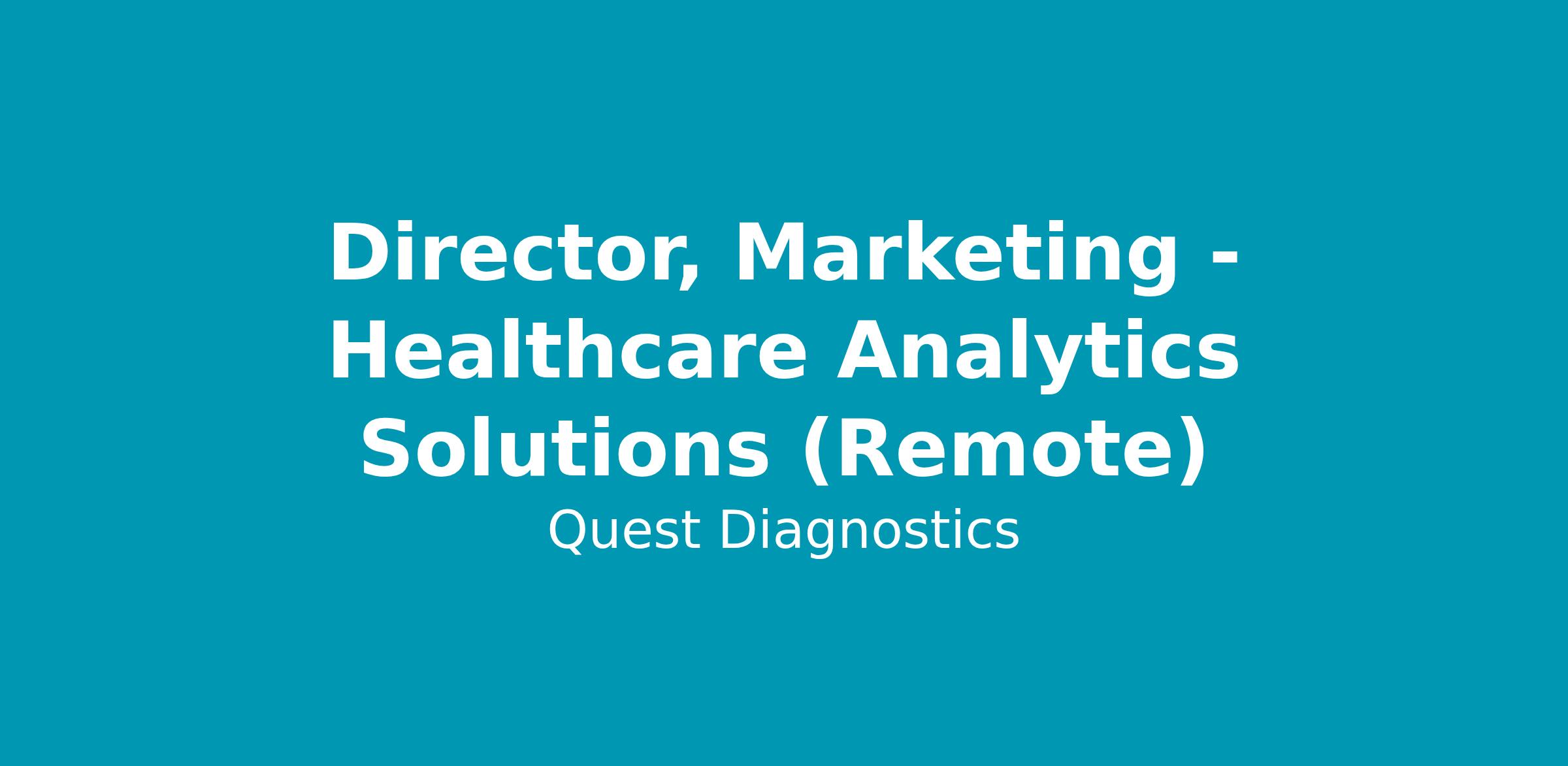 The Healthcare Analytics Solutions (HAS) Marketing Director is a marketing leader for the Healthcare Analytics Solutions business and strategic growth partner to the HAS General Manager. The Director will develop marketing insights and strategic marketing plans to fulfill business growth priorities; drive execution through collaboration across HAS sales and business development teams; liaise across the Quest Enterprise to support HAS development plans.