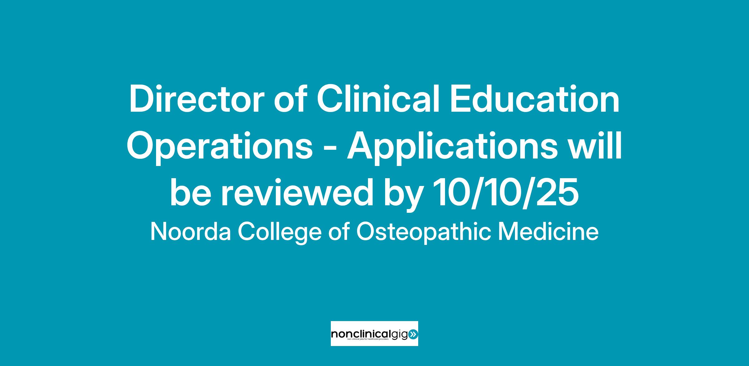We’re seeking a Director of Clinical Education Operations at Noorda College of Osteopathic Medicine to serve as the operational backbone of our clinical education program, managing the logistics and coordination for nearly 400 third- and fourth-year medical students across multiple sites!