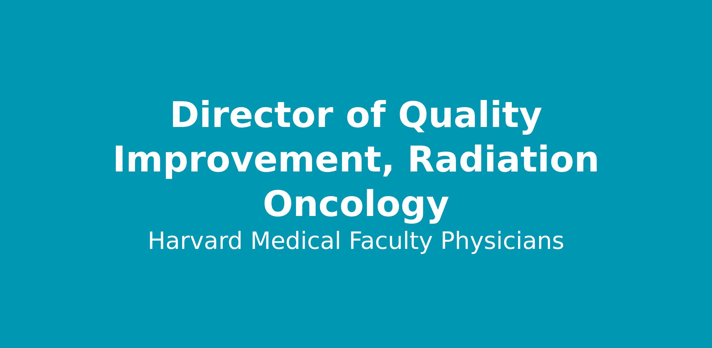 The Department of Radiation Oncology at Beth Israel Deaconess Medical Center (BIDMC) in Boston is actively seeking full-time Radiation Oncology faculty members with expertise in their selected disease site subspecialty to serve as the Director of Quality Improvement.