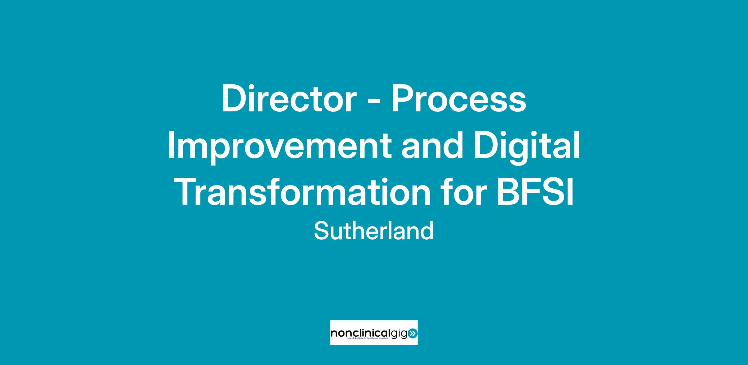 Sutherland is seeking an organized and reliable person to join us as a Service Excellence - Director Digital Transformation (Banking Vertical). We are a group of driven and supportive individuals. If you are looking to build a fulfilling career and are confident you have the skills and experience to help us succeed, we want to work with you!