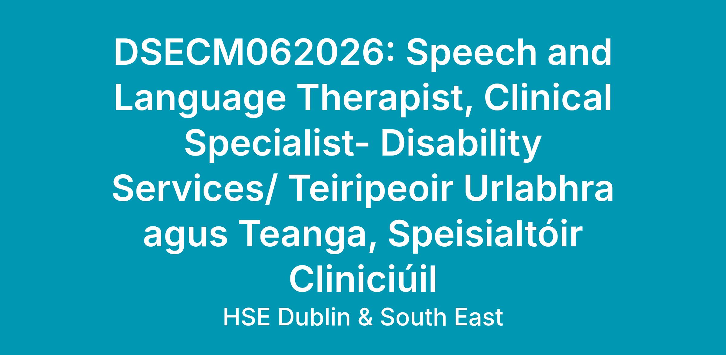 The role will also contribute to clinical governance, service development, quality improvement and capacity building across the service, supporting best practice in Speech and Language Therapy within disability services and promoting a human rights–based approach to care in line with the UN Convention on the Rights of Persons with Disabilities (CRPD).