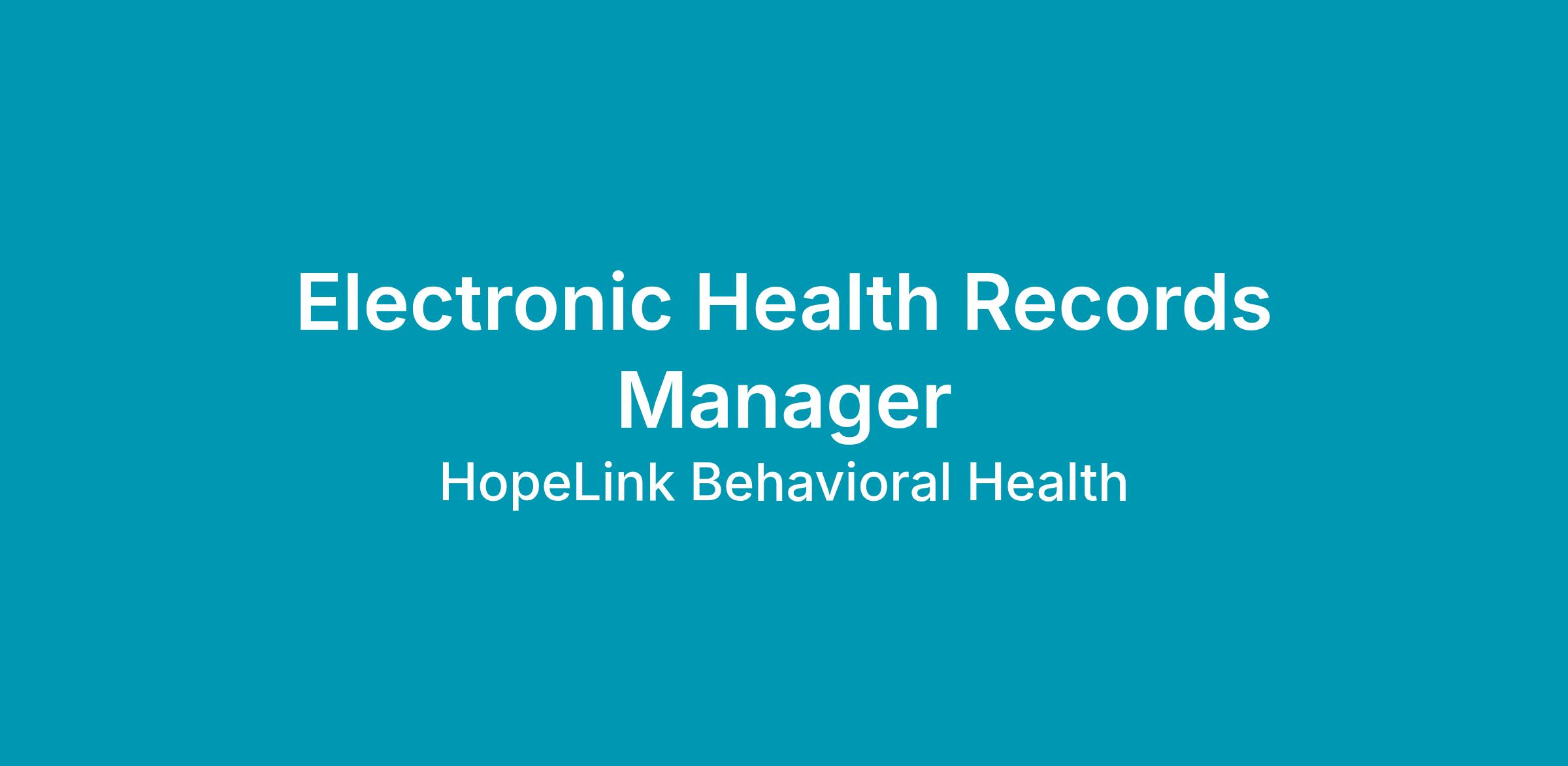 Under the supervision of the Assistant Chief Clinical Officer, the Electronic Health Record Manager is responsible for maintaining the organization's electronic health record (EHR) β Credible, providing training and technical assistance to HopeLink employees as needed on use of the EHR. Creates programs and services within the EHR. Processes non-medical billing in conjunction with finance and administrative staff. Compiles data for compliance reports. Completes regular reviews of EHR to ensure completeness and accuracy of clinical and billing documentation and completes and submits reports both internally and externally. Position requires close collaboration with clinical managers and direct service staff, the finance department, and other members of the organization's leadership.