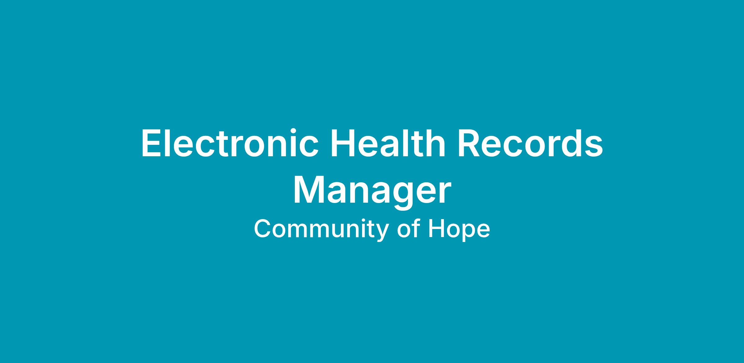 Community of Hope is seeking a EHR Manager to make a lasting impact on how care is delivered at Community of Hope. The EHR Manager provides leadership that ensures our electronic health record is dependable, user-friendly, and designed to support exceptional, patient-centered care. By bridging Operations, IT, and Clinical Services, you’ll translate frontline needs into meaningful system improvements and coordinate training and support that help our teams deliver their best work. This position is a full-time position located at our Conway Health and Resource Center in SW DC.