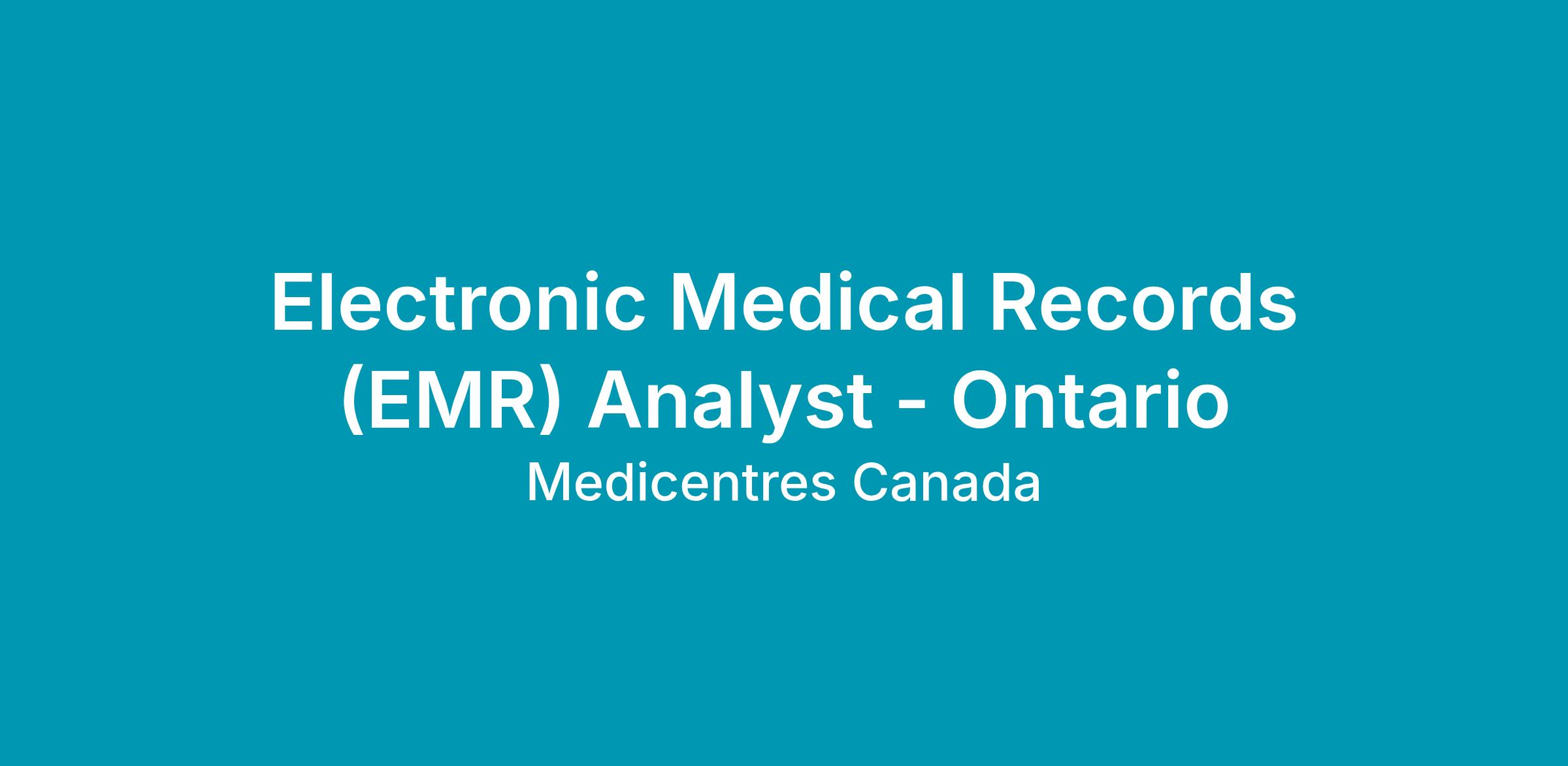 Position Title: Electronic Medical Records (EMR) Analyst Job Type: Full-Time, Permanent Department: IT Reports to: Supervisor- EMR Services Job Location: Newmarket, Ontario - occasional travel within Ontario required Salary Range: $50,000 - $60,000 based on experience and qualifications Date Last Updated: August 2025