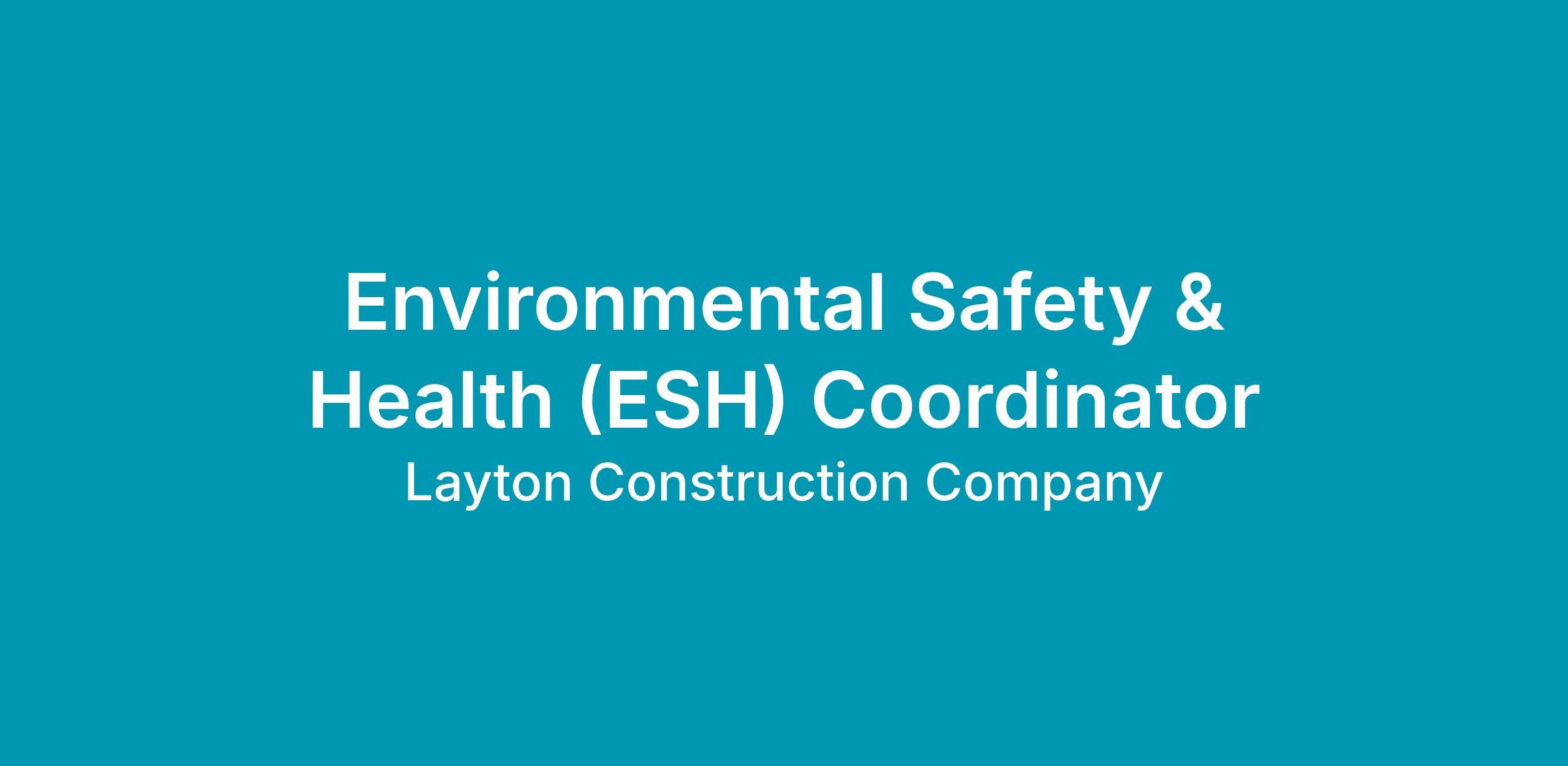 The ESH Coordinator actively supports Layton Construction project teams to ensure the effective implementation of environmental, safety, and health standards at site level.