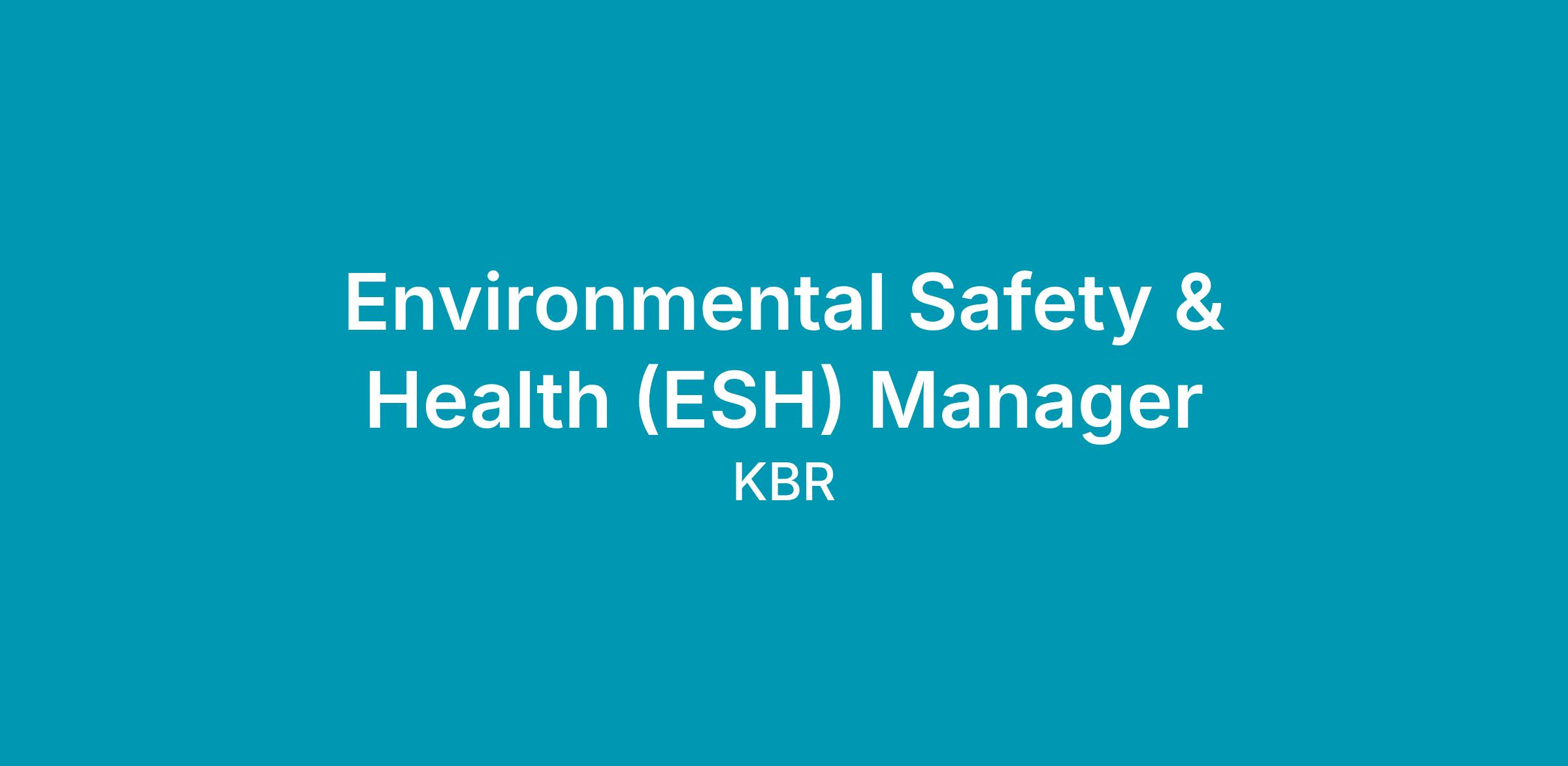 Environmental Safety & Health (ESH) ManagerBelong. Connect. Grow. with KBR!