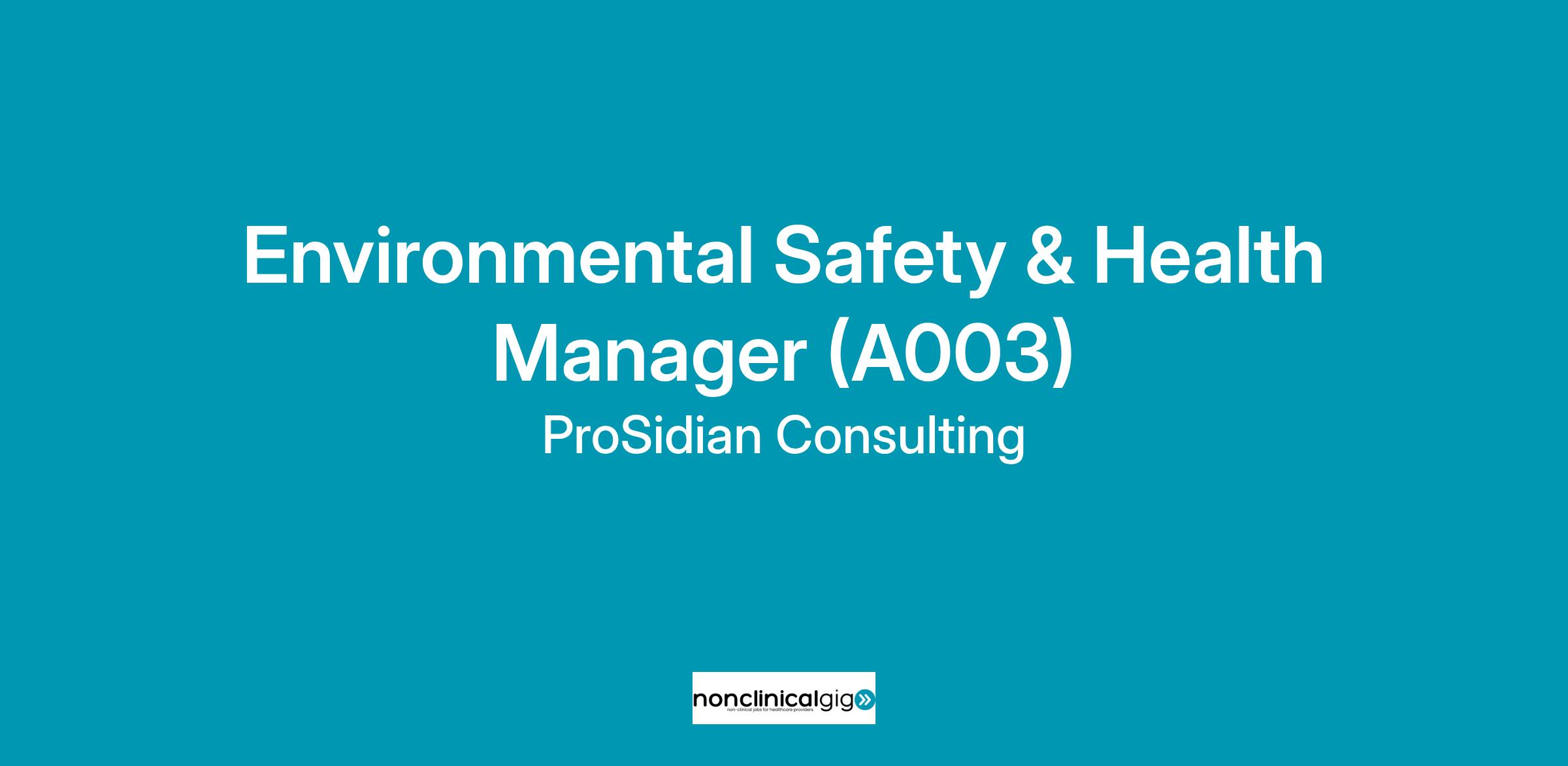 ProSidian Seeks a Environmental Safety & Health Manager (A003) (CONUS/OCONUS - Jacksonville, FL and the Caribbean | Senior Consultant - Full-Time) to support an engagement for the second largest civil works district in the US Army Corps of Engineers, with an area of responsibility encompassing Florida and the Caribbean.