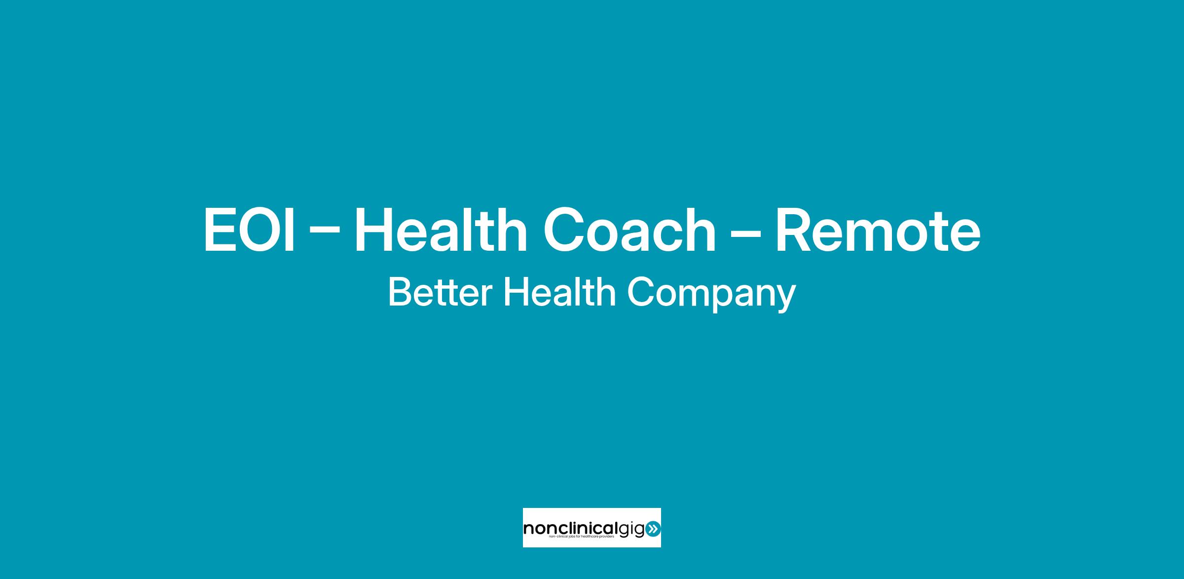 EOI – Health Coach – Remote