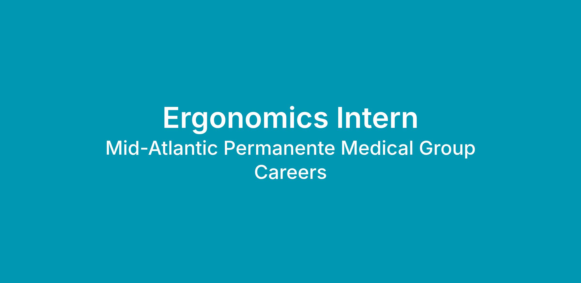 Mid-Atlantic Permanente Medical Group (MAPMG) invites applications for an Ergonomics Intern to join our Professional Development and Wellness department. This position is a part-time, 24 hours per week, internship opportunity based out of our regional office located in Washington, DC with a hybrid work model. Please note, this position is ineligible for benefits. The summer internship program runs for about 12 weeks with a start date of May 29th and end date of August 14th. Click here to learn more about MAPMG’s Internship Program.