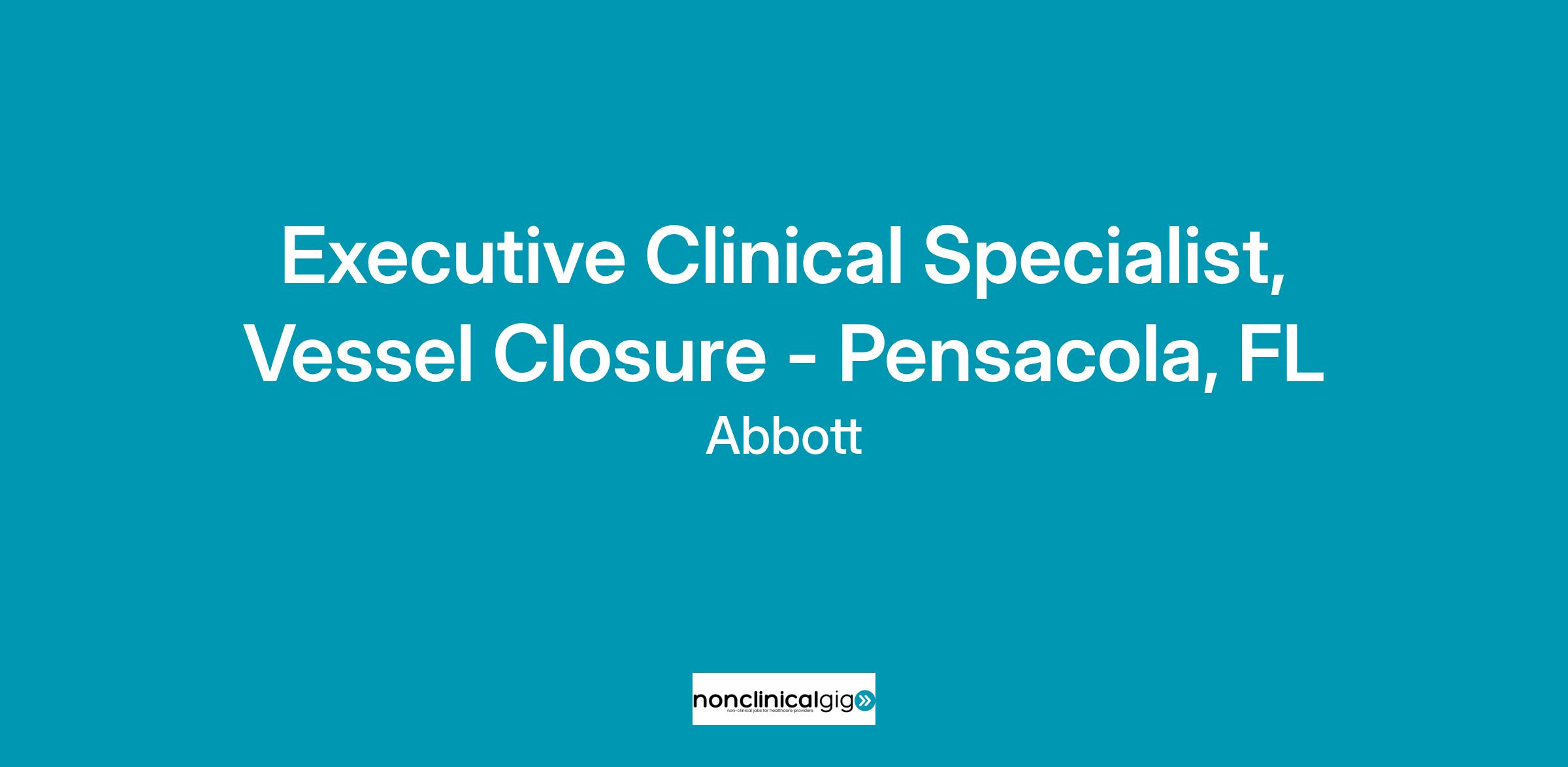 We currently have an opportunity for an Executive Clinical Specialist, Vessel Closure, in Pensacola, FL. The Clinical Specialist will primarily be responsible for case planning, case support coverage, and product pull- through throughout the designated territory, and throughout the Region as needed. The Clinical Specialist will promote Vascular products through education, service and training of customers in the hospital setting. The Clinical Specialist will provide clinical education and sales support in order to assist in achieving projected sales goals, increasing sales revenues within assigned product lines, and increasing market share. This position will have a heavy focus on Vessel Closure.