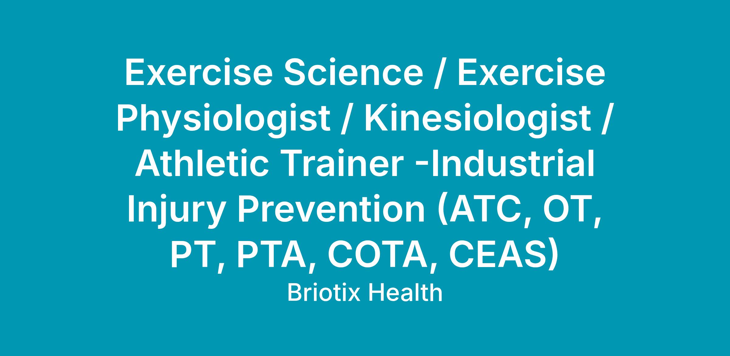 Key Words: industrial medicine, ergonomics, body mechanics, occupational health, healthcare, industrial sports medicine, sports medicine, athletic trainer, AT, ATC, occupational therapist, OT, physical therapist, PT, DPT, kinesiologist, exercise physiologist, physical therapy assistant, PTA, safety, industrial ergonomics, office ergonomics, health & wellness, injury prevention, behavioral ergonomics, education, 1:1, autonomy, independent, clinical, non-clinical, education, presentations, public speaking, coaching, biomechanics, safety, human movement